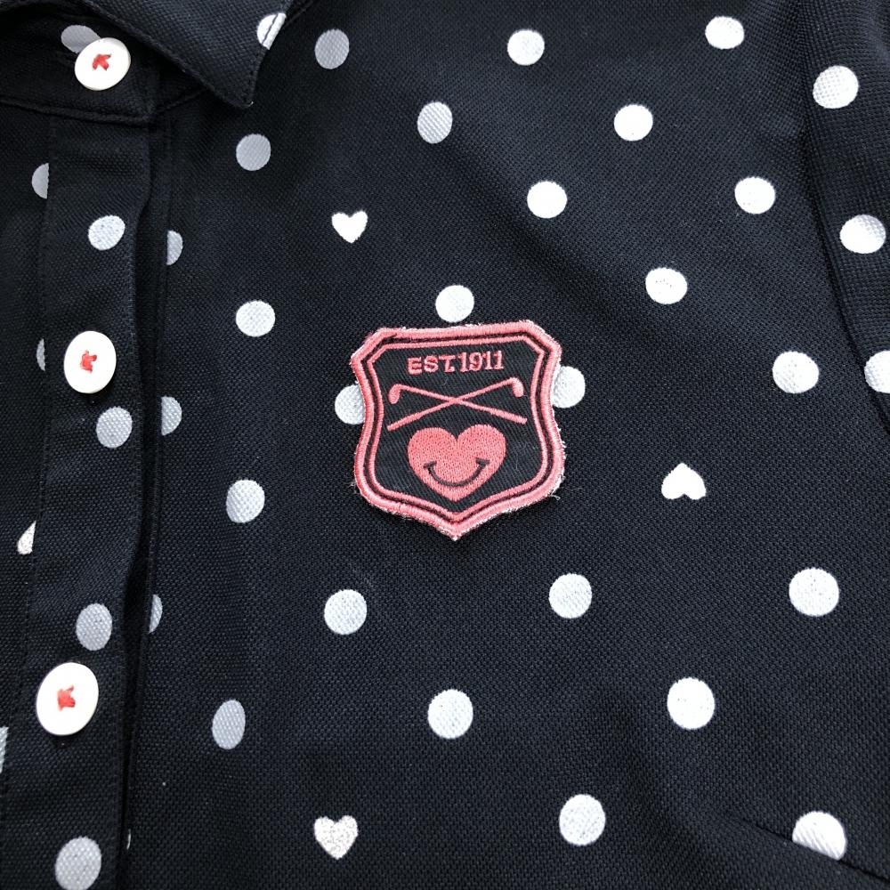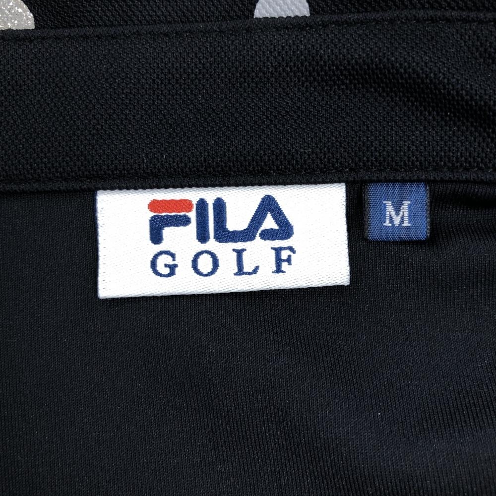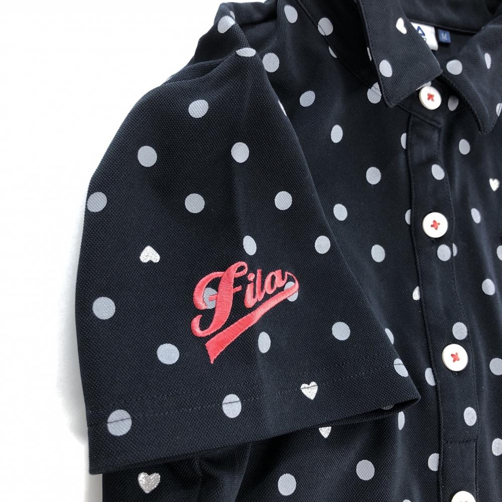 フィラゴルフ 半袖ポロシャツ 黒×グレー ドット柄 胸元ワッペン レディース M ゴルフウェア FILA GOLF