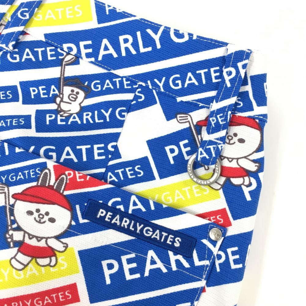 【超美品】パーリーゲイツ×LINE FRIENDS スカート 白×ブルー 斜めロゴ総柄 レディース 1(M) ゴルフウェア 2022年モデル PEARLY GATES