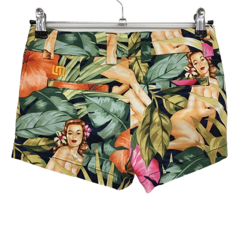 【超美品】ラウドマウス ショートパンツ グリーン×ベージュ 総柄 女性 リーフ レディース USO(M) ゴルフウェア LOUDMOUTH