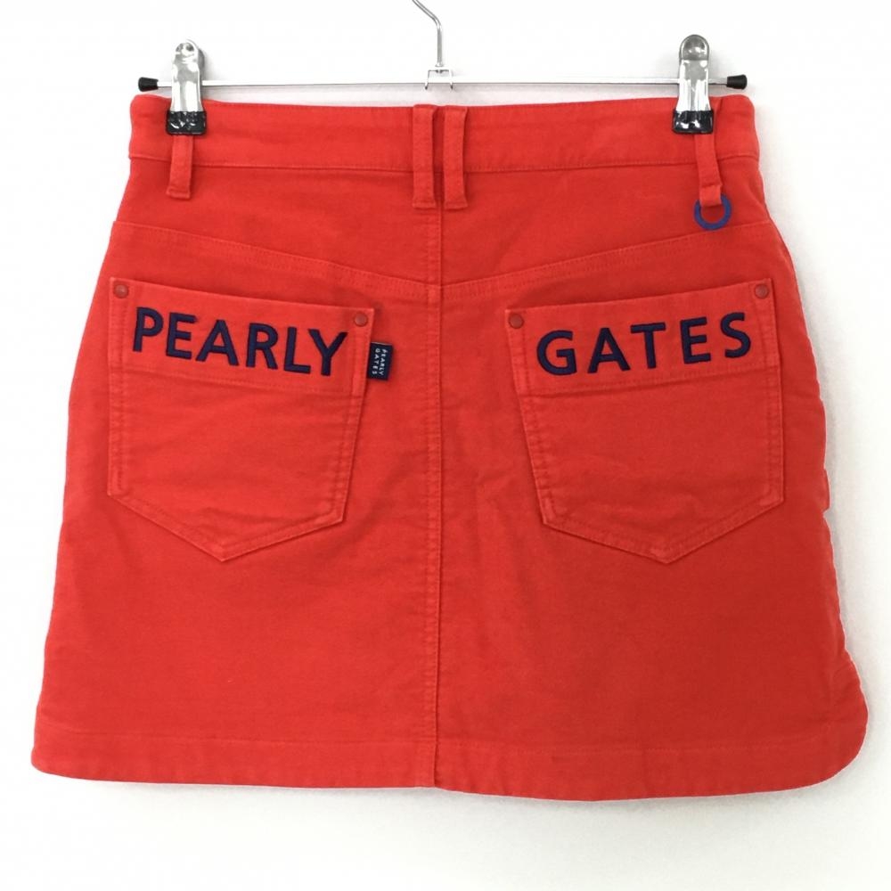 【美品】パーリーゲイツ スカート レッド×ネイビー 30周年 裏地ニコちゃん 後ろビッグロゴ レディース 0(S) ゴルフウェア PEARLY GATES