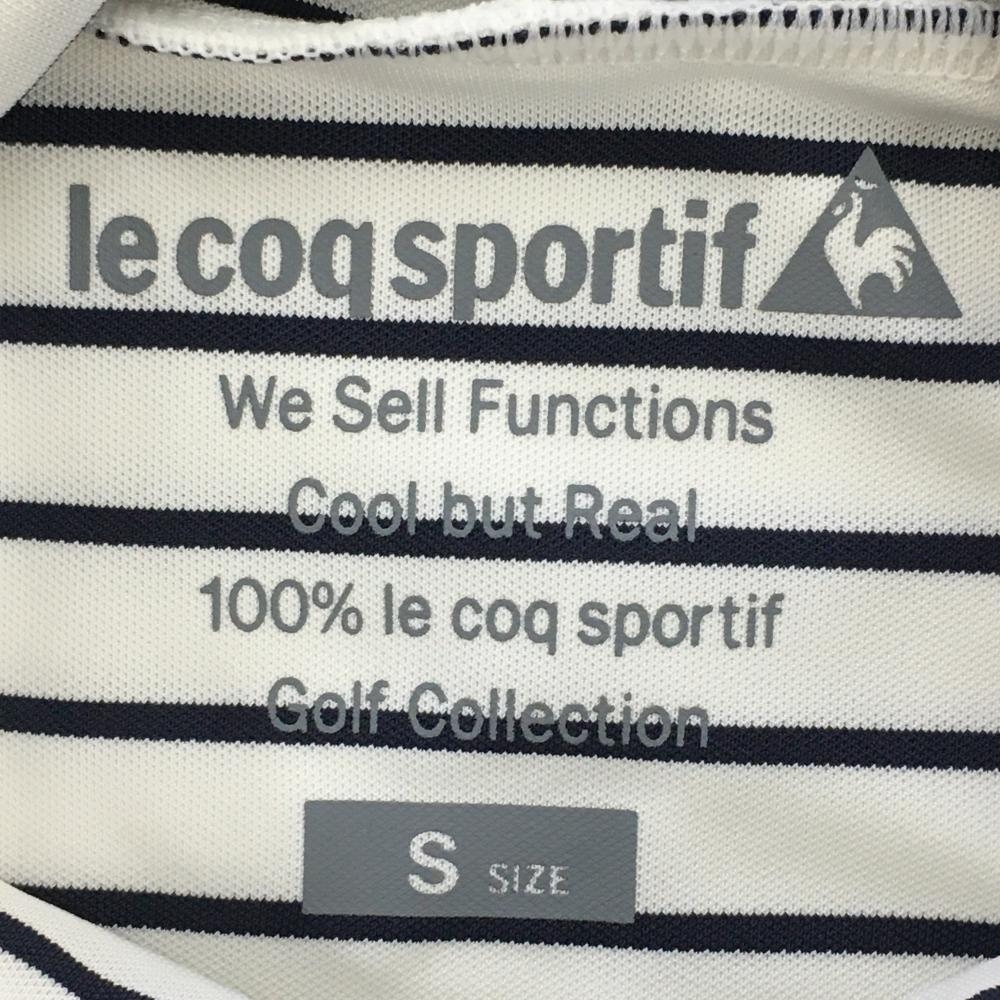 ルコック 長袖ハイネックシャツ 白×ネイビー ボーダー 胸元ワッペン レディース S ゴルフウェア le coq sportif