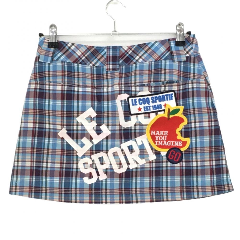 【超美品】ルコック スカート ライトブルー×パープル チェック アップルワッペン レディース 9(M) ゴルフウェア le coq sportif
