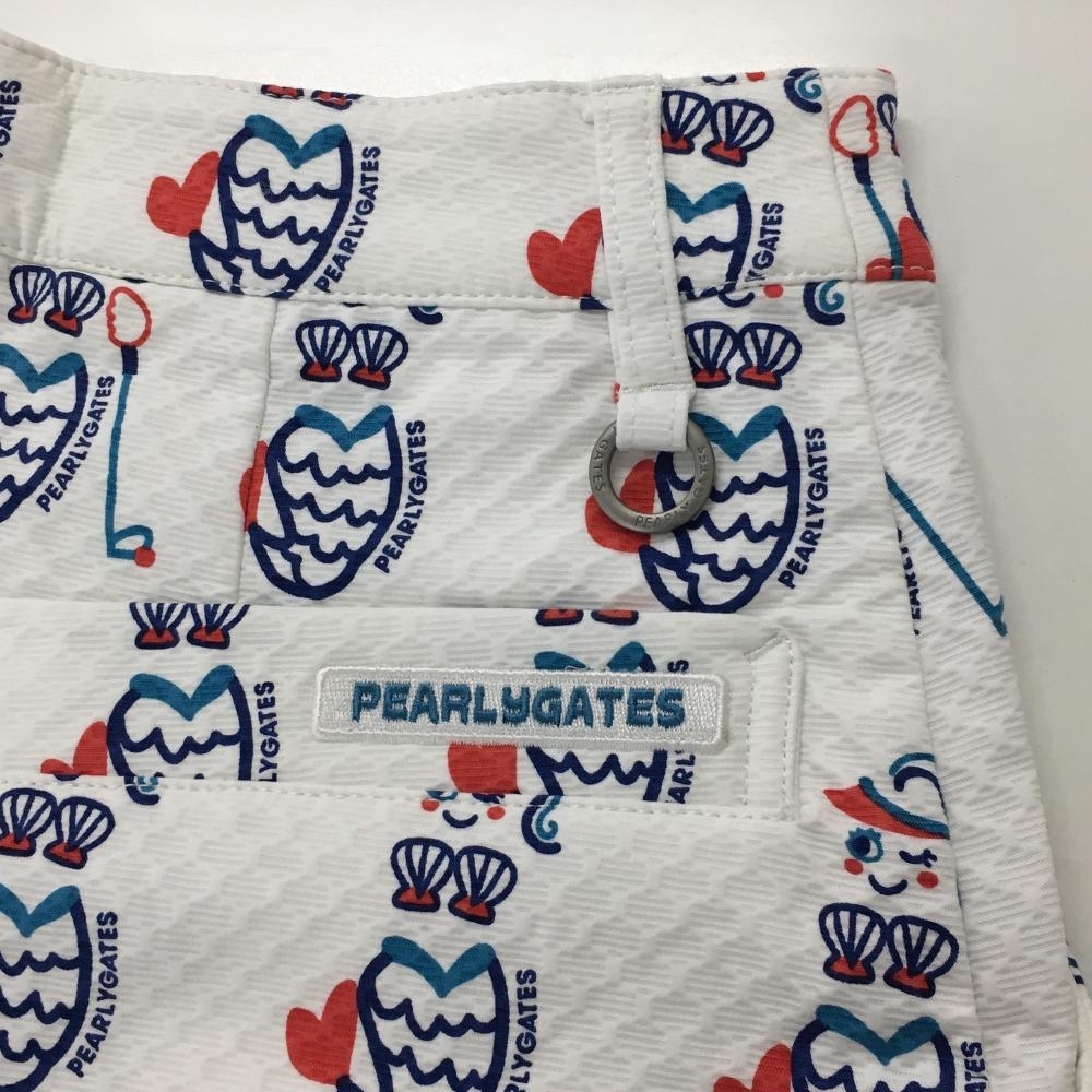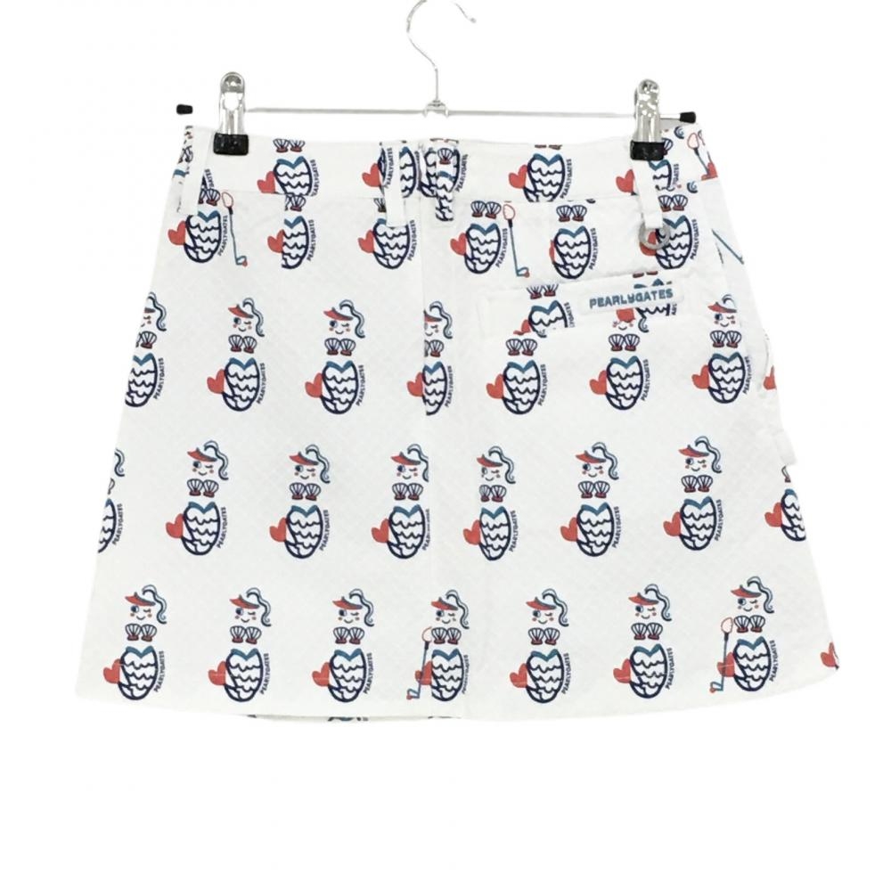 【美品】パーリーゲイツ スカート 白×ネイビー マーメイド柄 織生地 人魚 レディース 0(S) ゴルフウェア PEARLY GATES