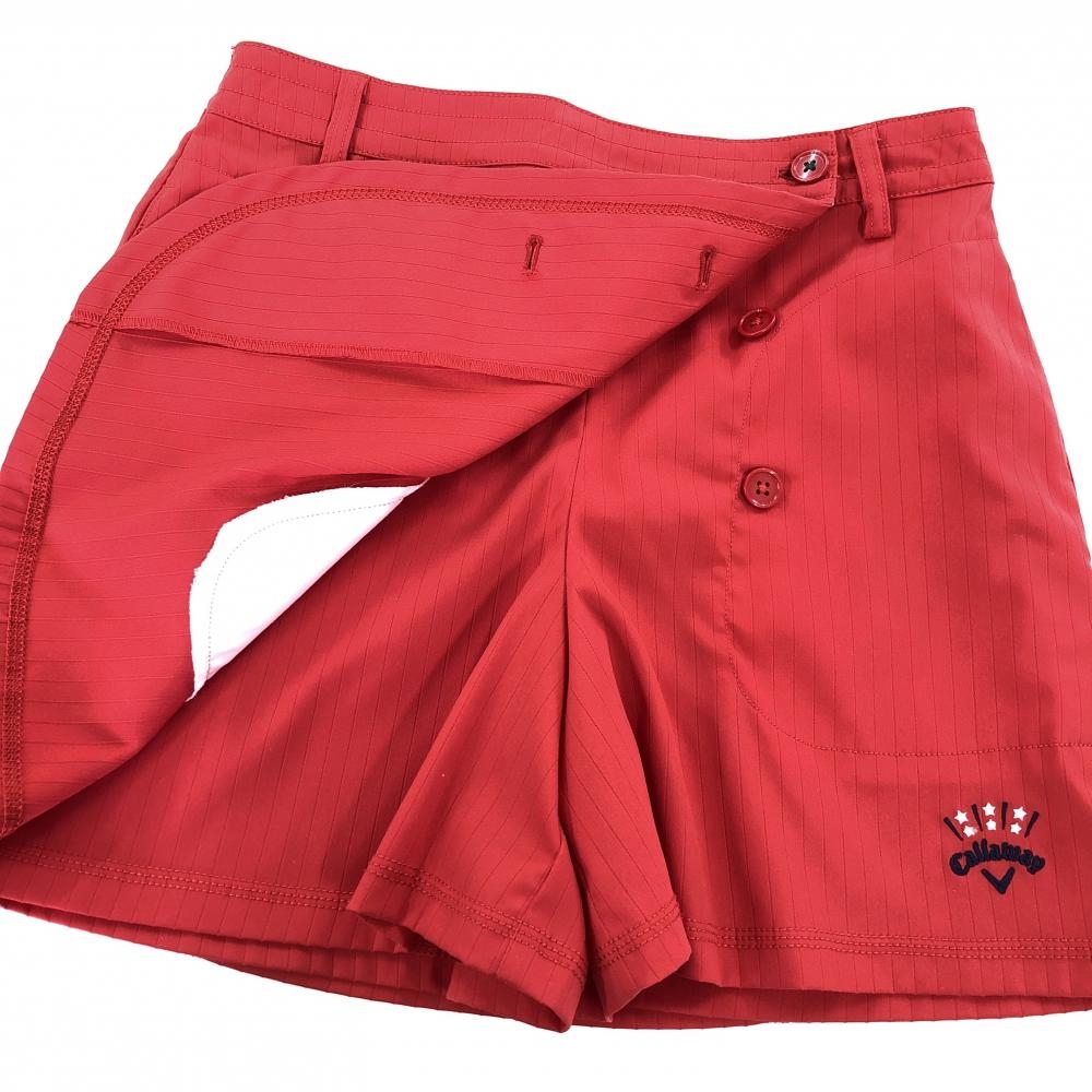 【超美品】キャロウェイ スカート レッド ストライプ織生地 内側インナーパンツ レディース M ゴルフウェア Callaway