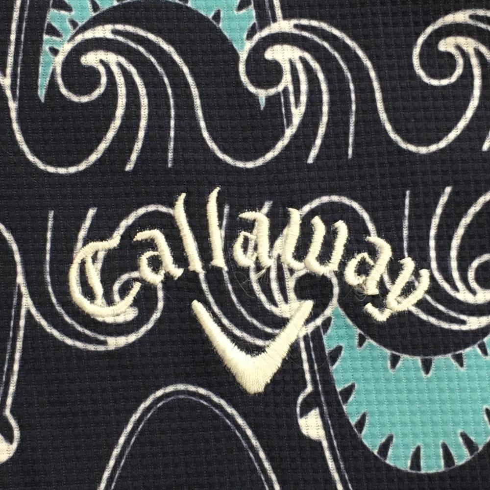 【美品】キャロウェイ 半袖ポロシャツ ネイビー×ライトブルー シャーク柄 一部裏メッシュ メンズ M ゴルフウェア Callaway