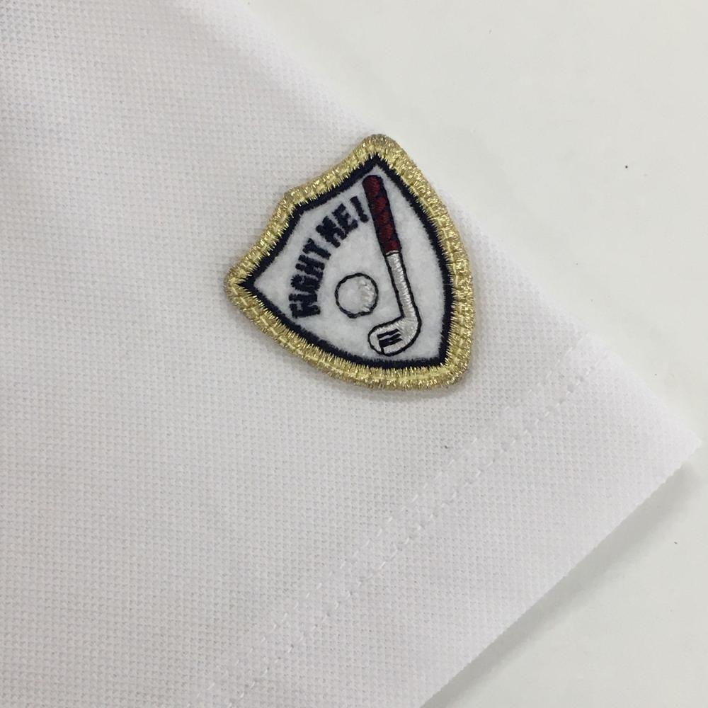 【超美品】ルコック 半袖ポロシャツ 白×黒 フロントロゴプリント ミニワッペン レディース M ゴルフウェア le coq sportif