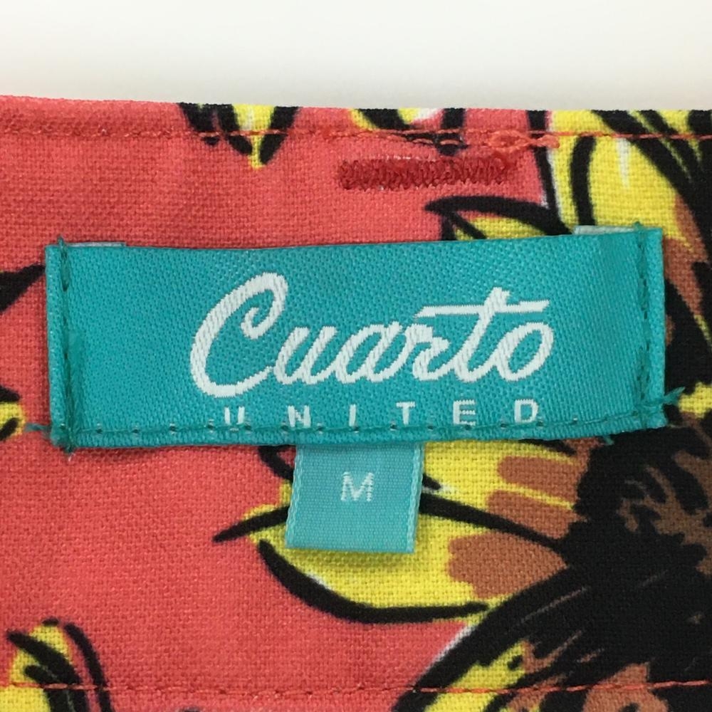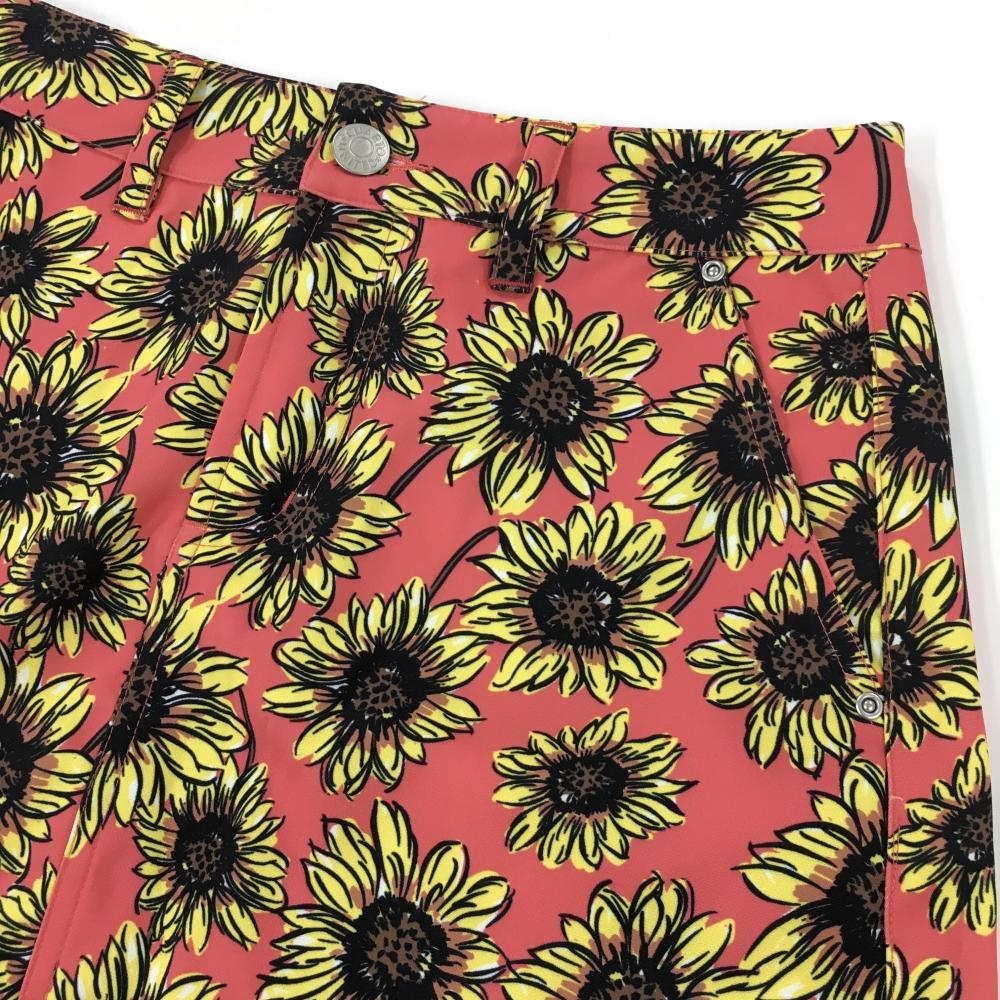 【超美品】クアルトユナイテッド スカート レッドピンク×イエロー ヒマワリ柄 ロゴ刺しゅう レディース M ゴルフウェア CUARTO UNITED