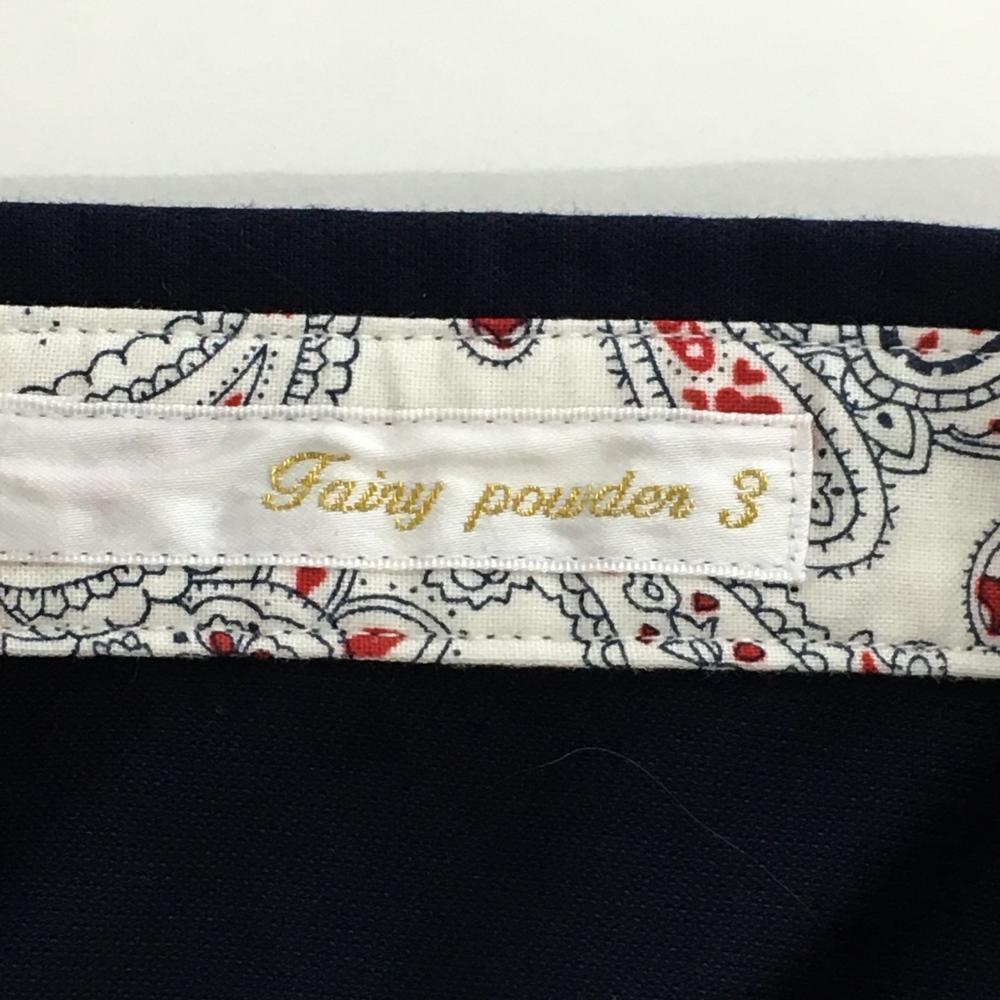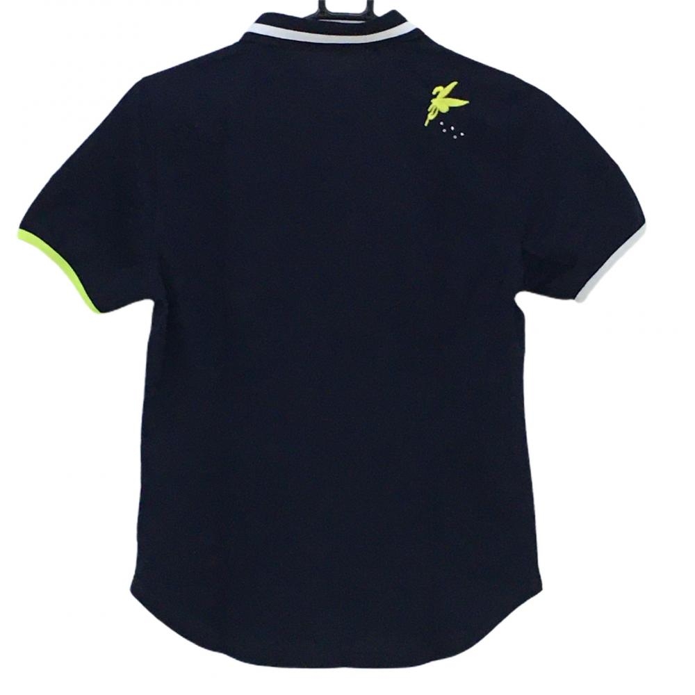 【美品】フェアリーパウダー 半袖ポロシャツ ネイビー イエロー刺しゅう 襟ライン パフスリーブ レディース S ゴルフウェア FAIRY POWDER