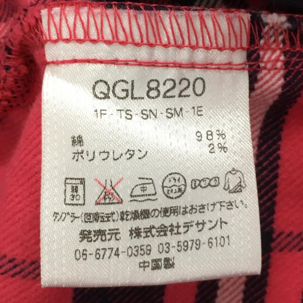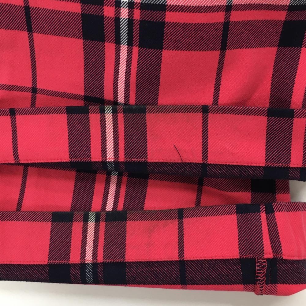 【美品】ルコック パンツ ピンク×ネイビー チェック 総柄 ストレッチ レディース 7 ゴルフウェア le coq sportif