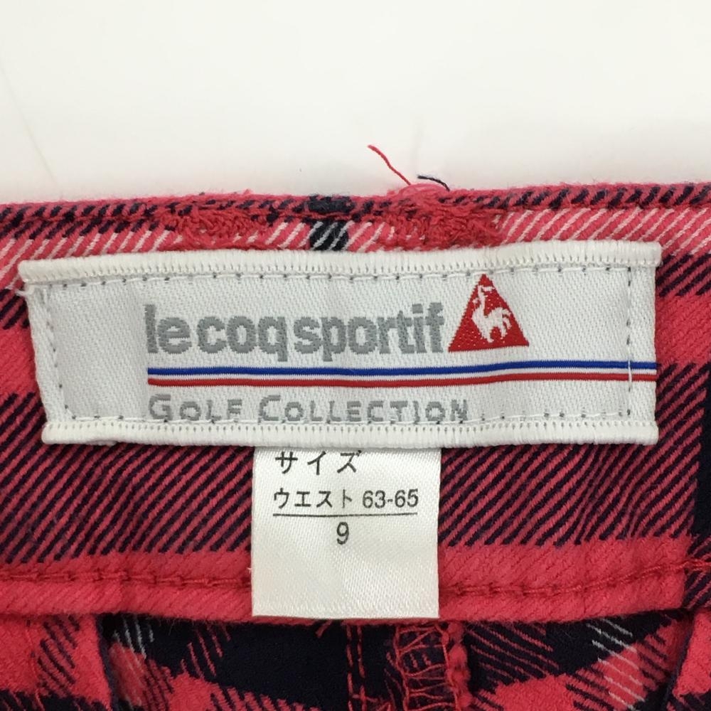 【美品】ルコック パンツ ピンク×ネイビー チェック 総柄 ストレッチ レディース 9 ゴルフウェア le coq sportif