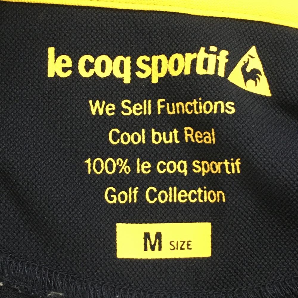 ルコック 半袖ポロシャツ ネイビー×イエロー 胸ワッペン プリント レディース M ゴルフウェア le coq sportif