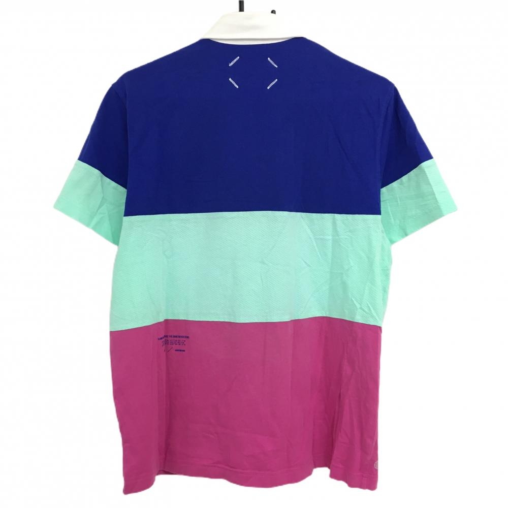 アディダス 半袖ポロシャツ ブルー×グリーン×ピンク バイカラー メンズ L ゴルフウェア 2022年モデル adidas
