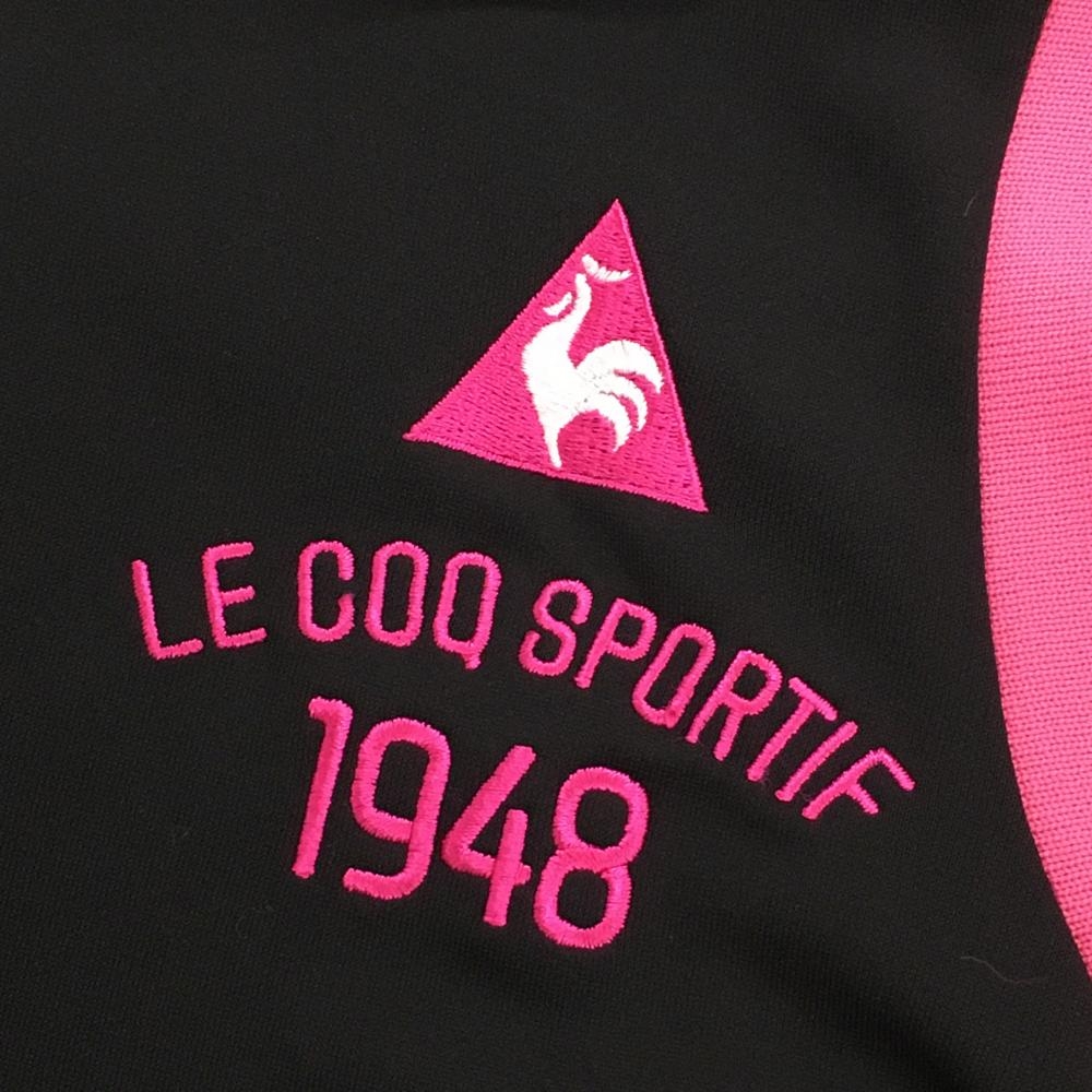 【超美品】ルコック 長袖ハイネックシャツ 黒×ピンク 肩切替ボーダー ハーフジップ Smartfit レディース S ゴルフウェア le coq sportif
