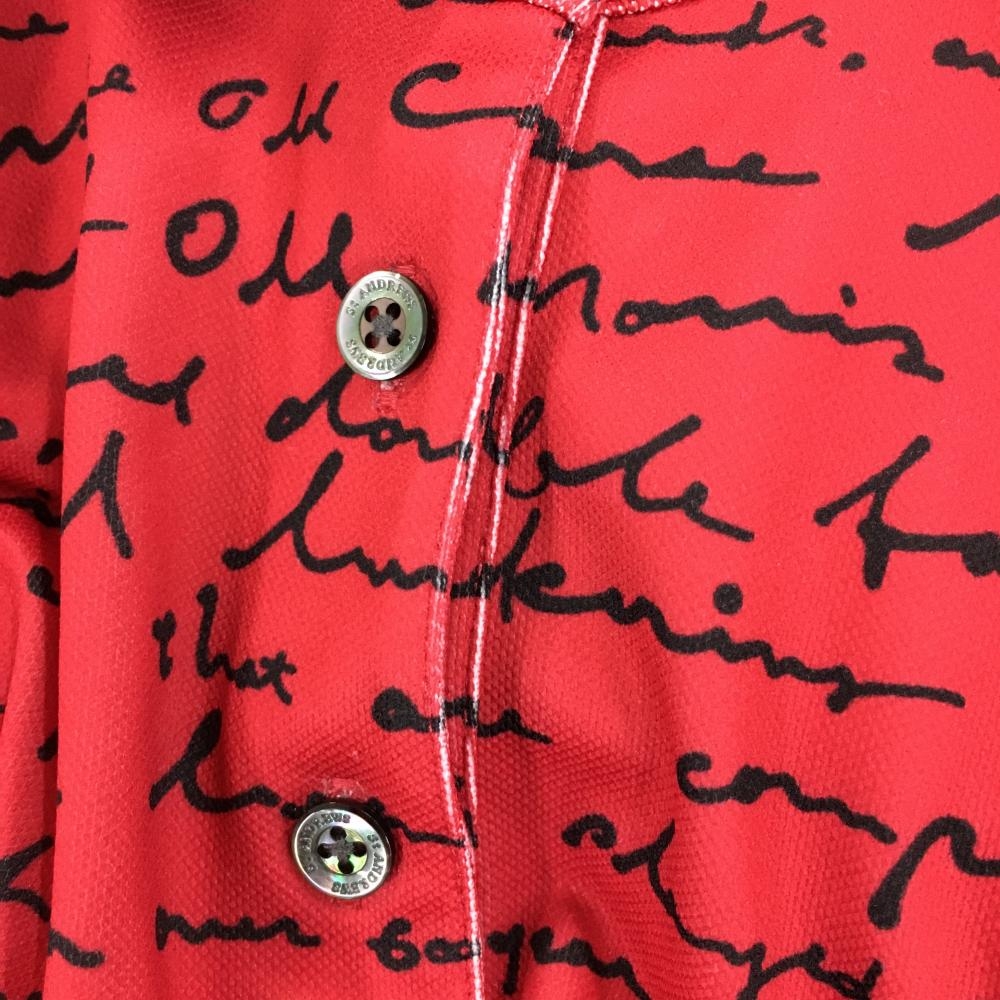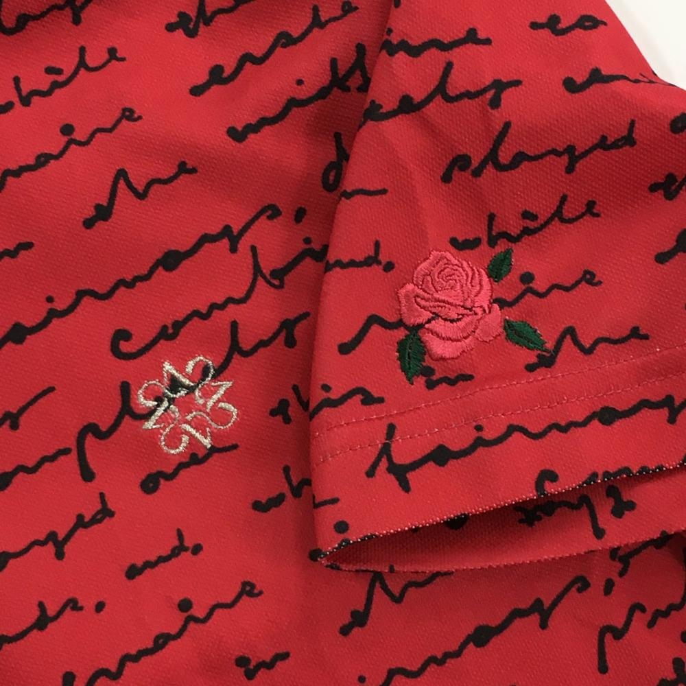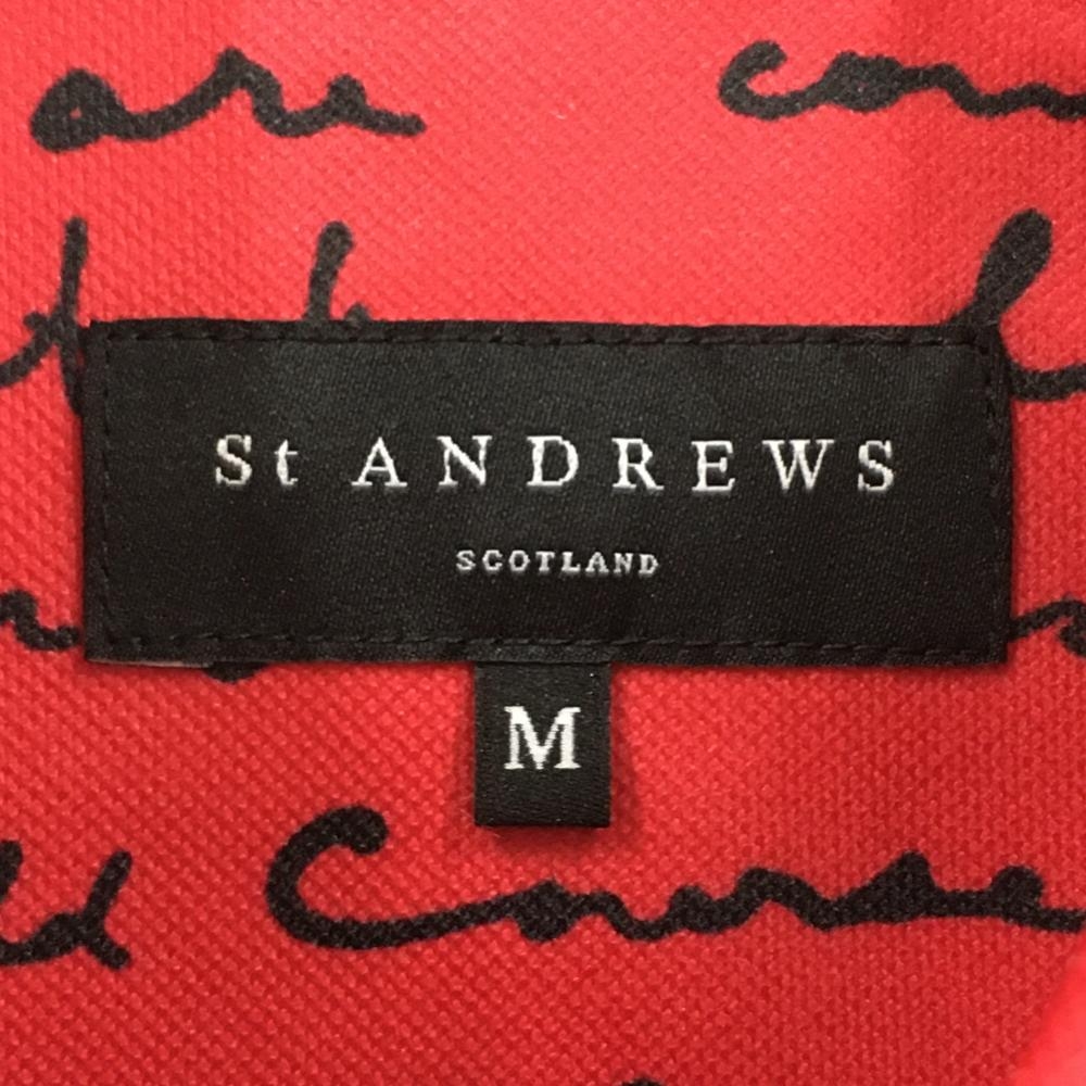 セントアンドリュース 半袖ポロシャツ レッド×黒 英字総柄 胸刺しゅう レディース M ゴルフウェア St ANDREWS