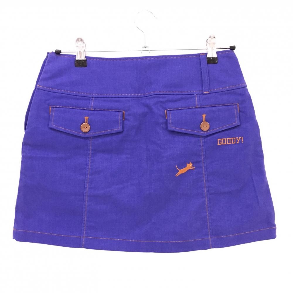 【超美品】ルコック スカート ブルー×オレンジ ステッチ ヒップねこ刺しゅう レディース 9(M) ゴルフウェア le coq sportif