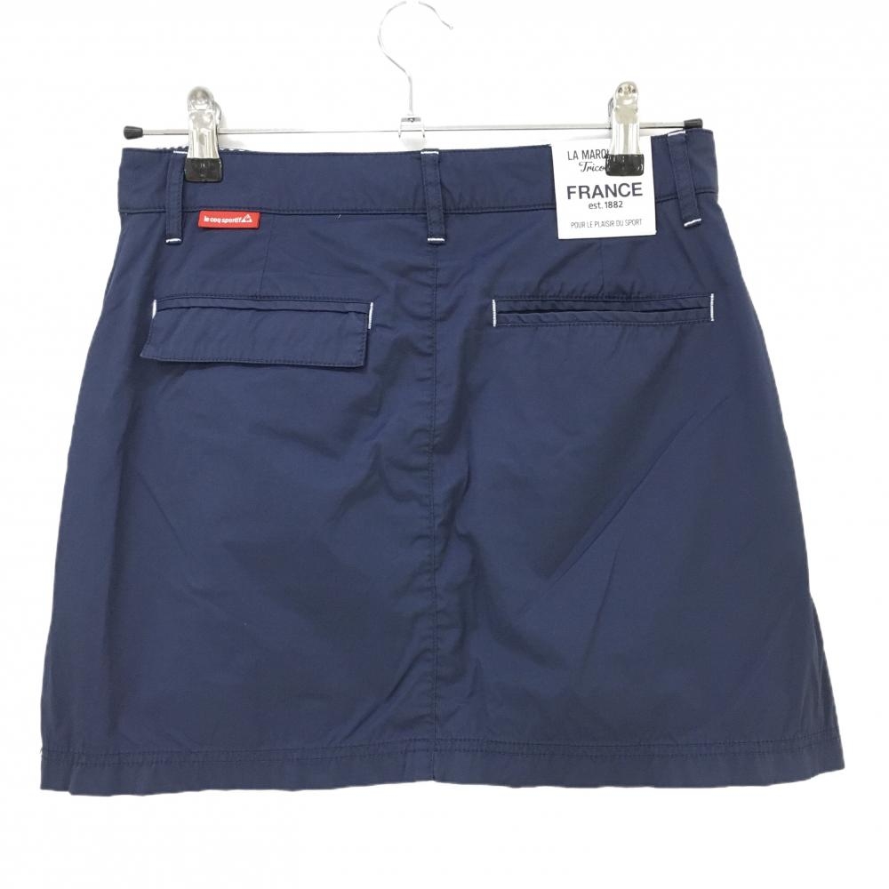 【美品】ルコック スカート ネイビー×白 サイドライン ナイロン混 レディース 9(M) ゴルフウェア le coq sportif