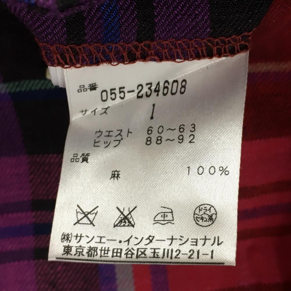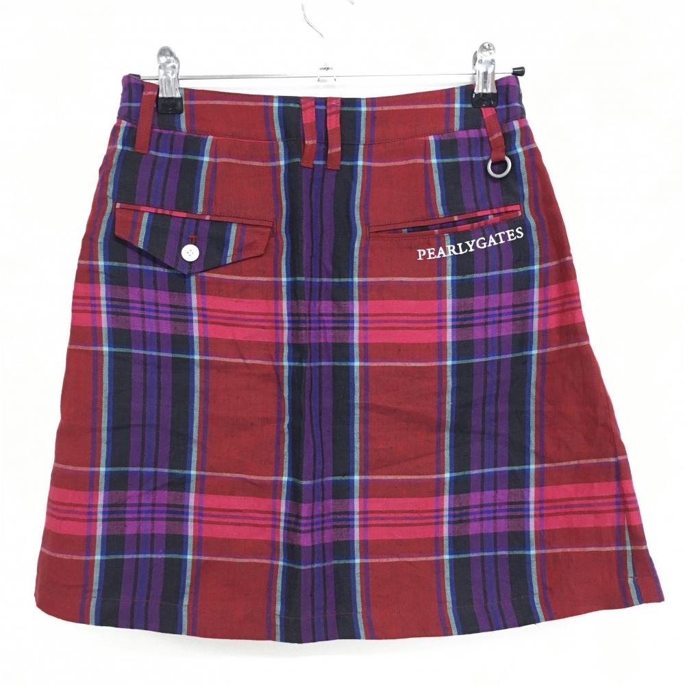 パーリーゲイツ スカート レッド×パープル チェック 麻100% インナーパンツ付 レディース 1(M) ゴルフウェア PEARLY GATES