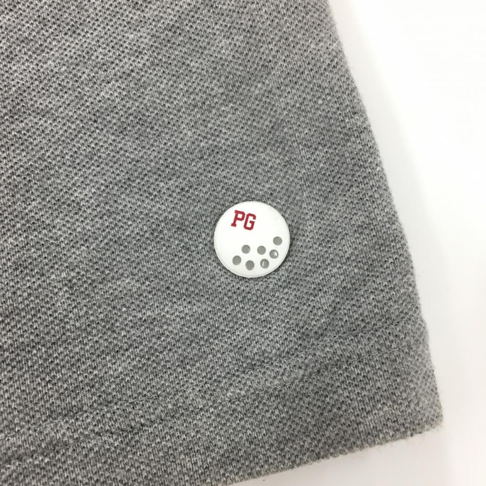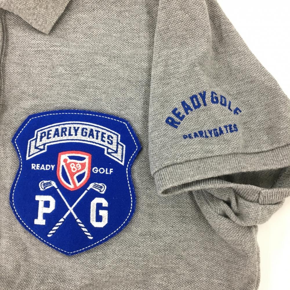 【美品】パーリーゲイツ 半袖ポロシャツ グレー×ブルー ビッグワッペン レディース 0(S) ゴルフウェア PEARLY GATES