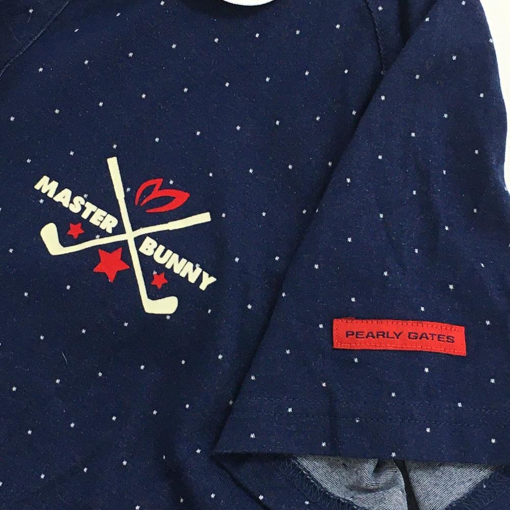 【美品】マスターバニー 半袖ポロシャツ ネイビー×白 ピンドット調 丸襟 レディース 2(L) ゴルフウェア MASTER BUNNY EDITION