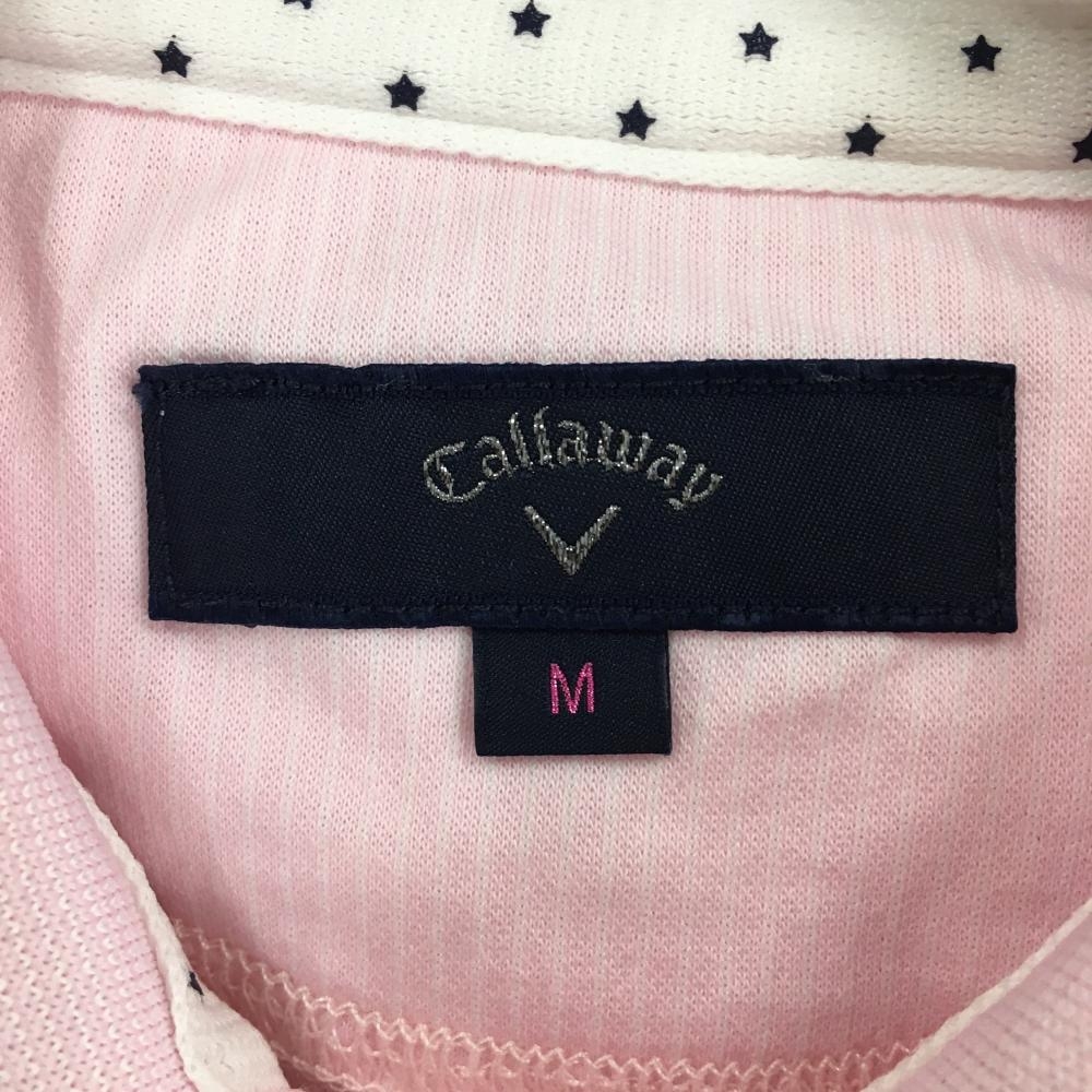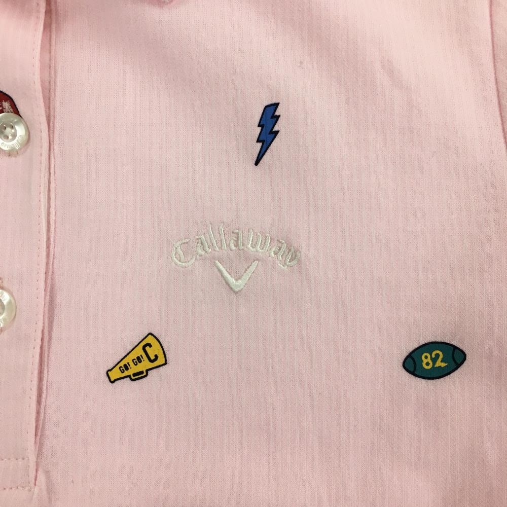 【美品】キャロウェイ 半袖ポロシャツ ピンク 前面総柄 ストライプ織生地 レディース M ゴルフウェア Callaway
