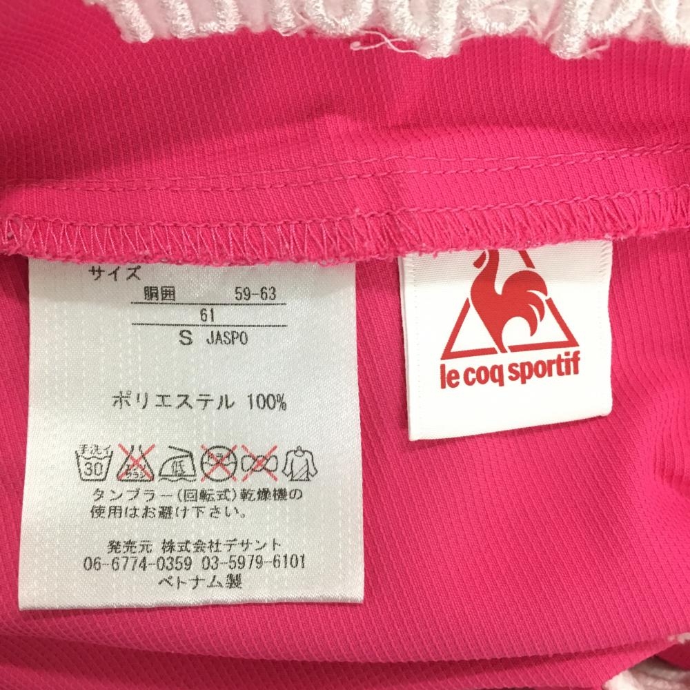 【美品】ルコック パンツ ピンク×白 サイドメッシュ ロゴ刺しゅう 裾ドローコード レディース S ゴルフウェア le coq sportif