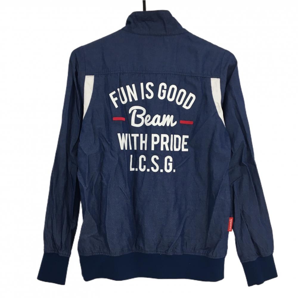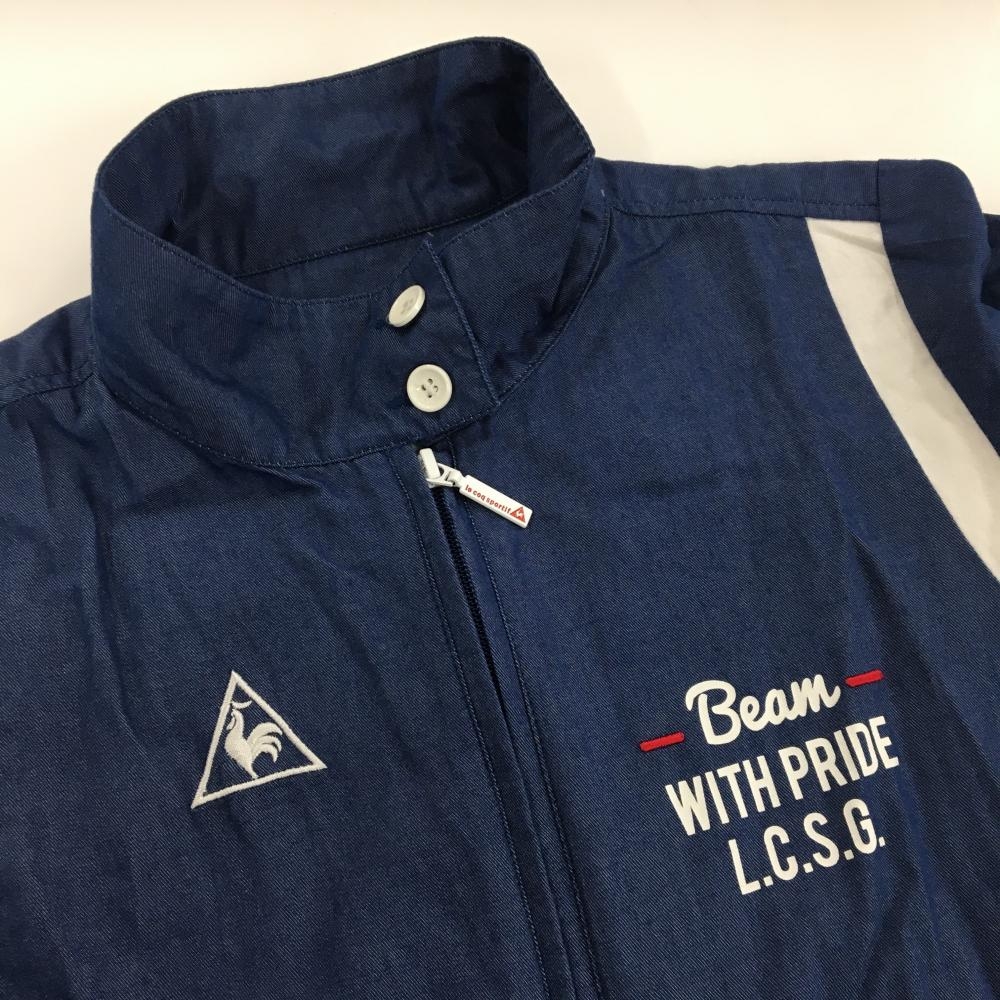 【美品】ルコック ジャケットブルゾン ネイビー×白 織生地 ロゴ刺しゅう レディース M ゴルフウェア le coq sportif