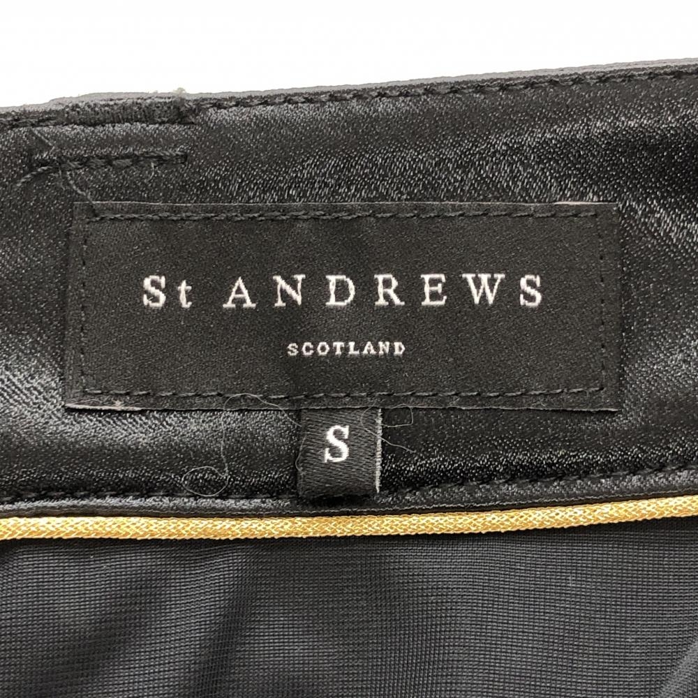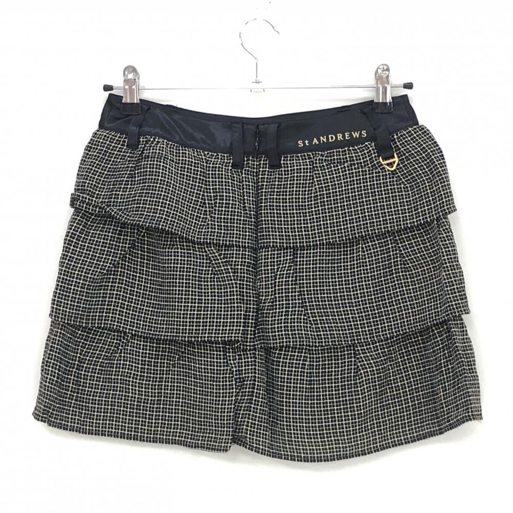 【超美品】セントアンドリュース スカート 黒×ゴールド チェック 3段フリル 裏地付 レディース S ゴルフウェア St ANDREWS