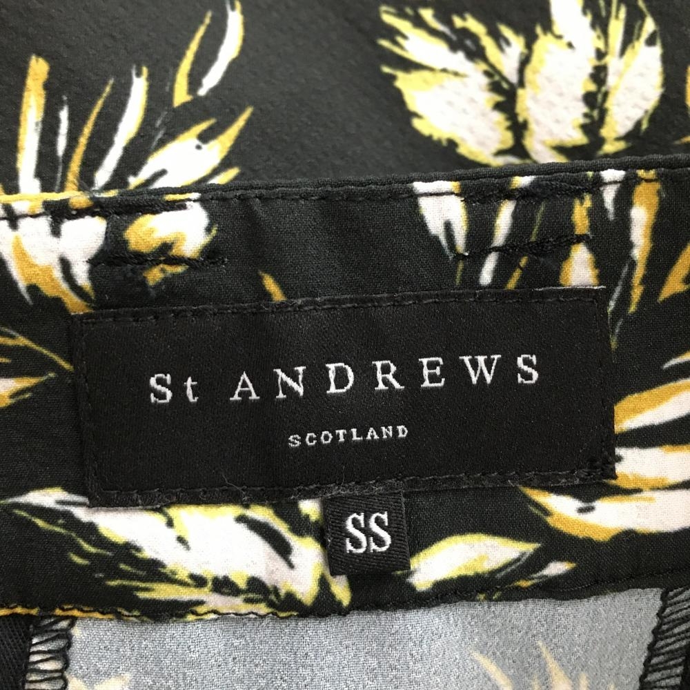 【超美品】セントアンドリュース スカート 黒×イエロー×白 花柄 レディース SS ゴルフウェア St ANDREWS