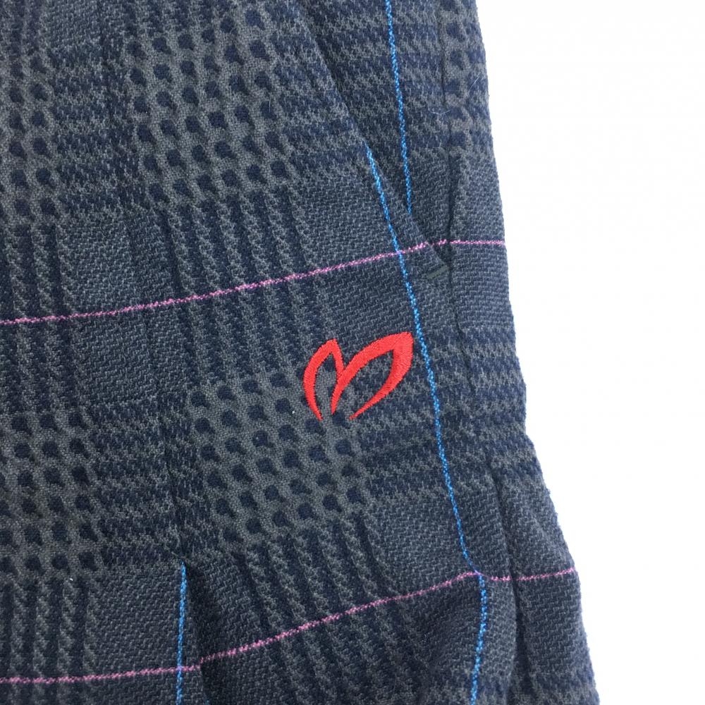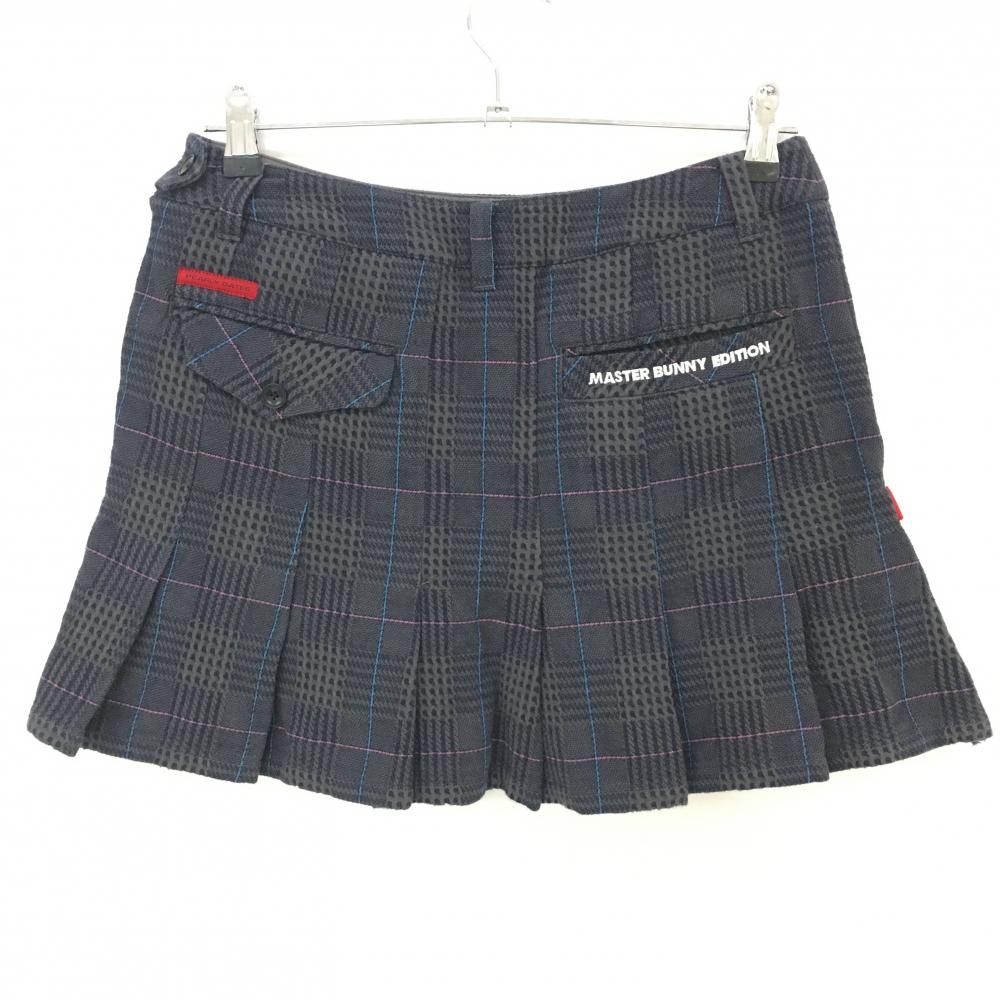 【美品】マスターバニー スカート グレー×ネイビー チェック 裾プリーツ レディース 1(M) ゴルフウェア MASTER BUNNY EDITION