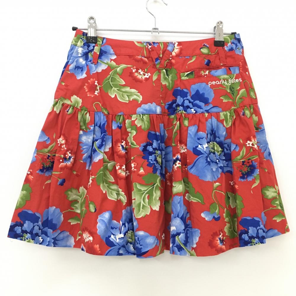 【超美品】パーリーゲイツ スカート レッド×ブルー 花柄 レディース 0(S) ゴルフウェア PEARLY GATES