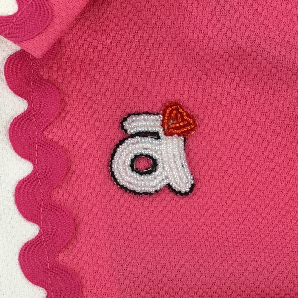 【美品】アルチビオ 襟付きフルジップベスト ピンク×白 裾ドローコード レディース 38(M) ゴルフウェア archivio