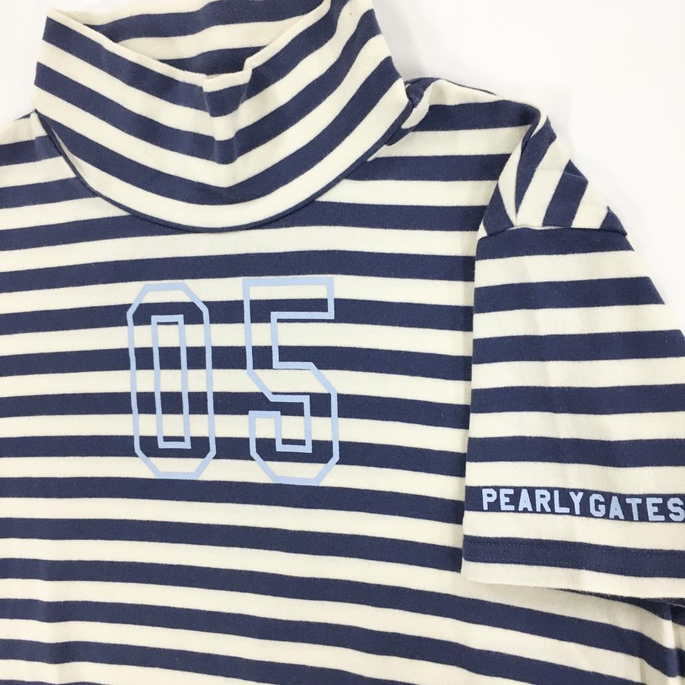 パーリーゲイツ 半袖ハイネックシャツ 白×ブルー系 ボーダー レディース 0(S) ゴルフウェア PEARLY GATES