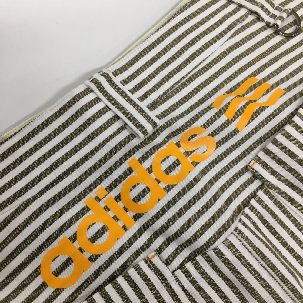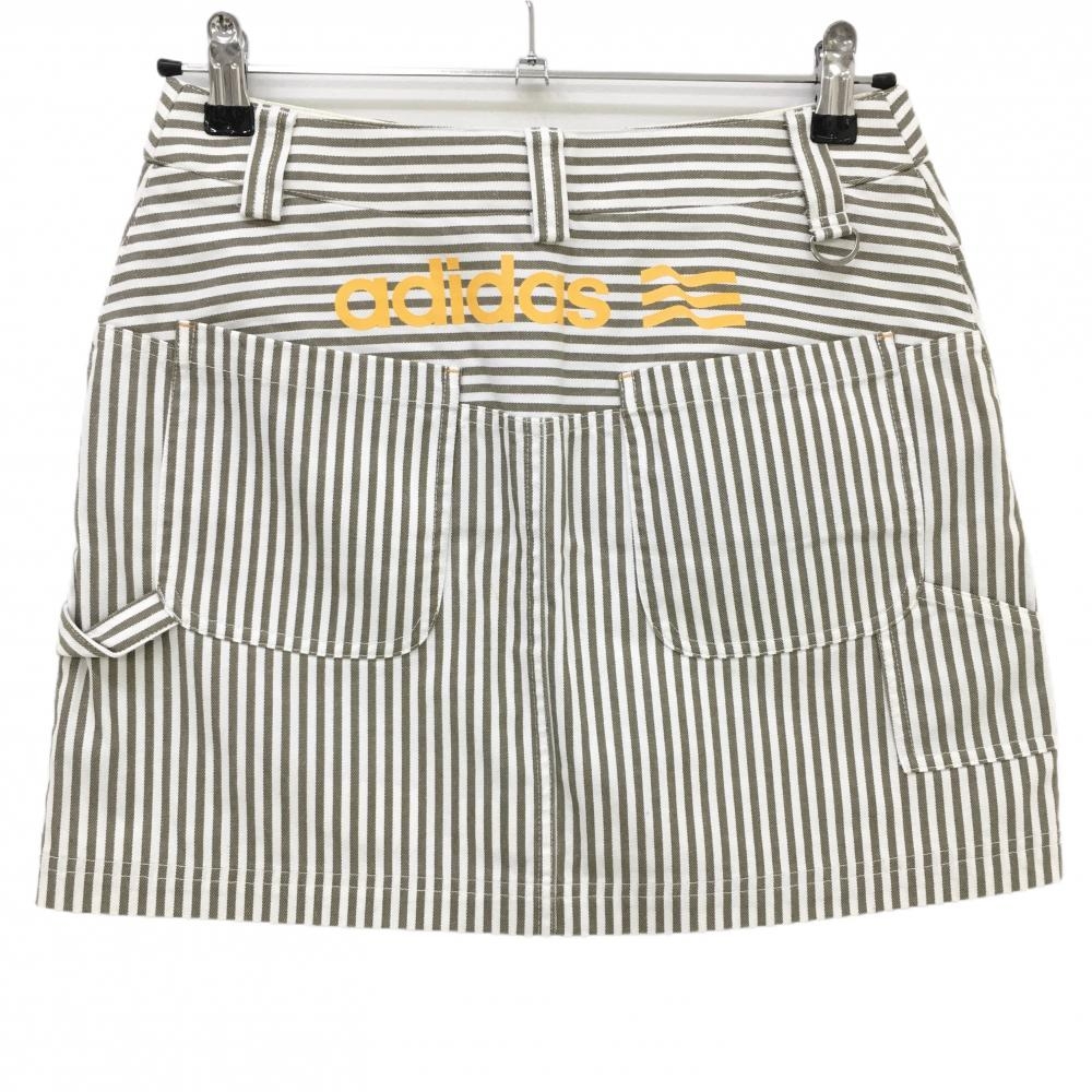【超美品】アディダス スカート 白×ブラウン ストライプ バックロゴプリント レディース M/M ゴルフウェア adidas