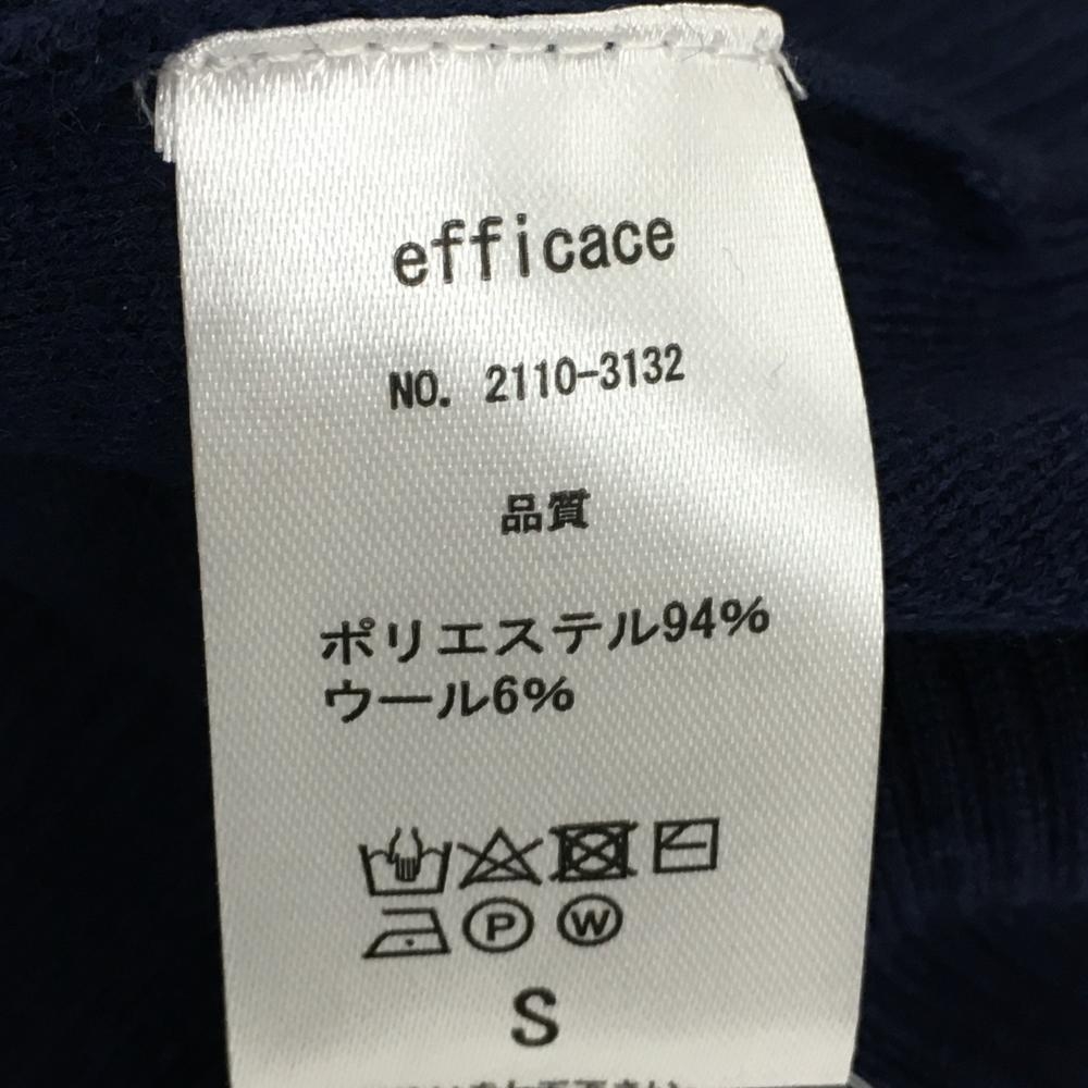 【新品】エフィカス セーター ネイビー×イエロー ニット ウール混 Vネック レディース S ゴルフウェア efficace