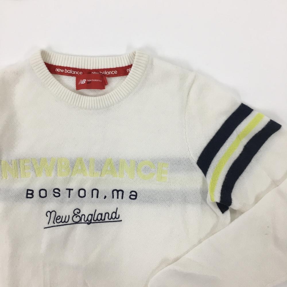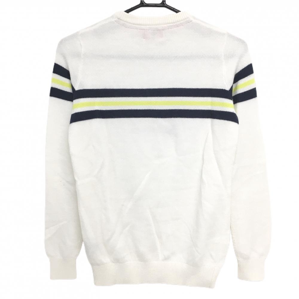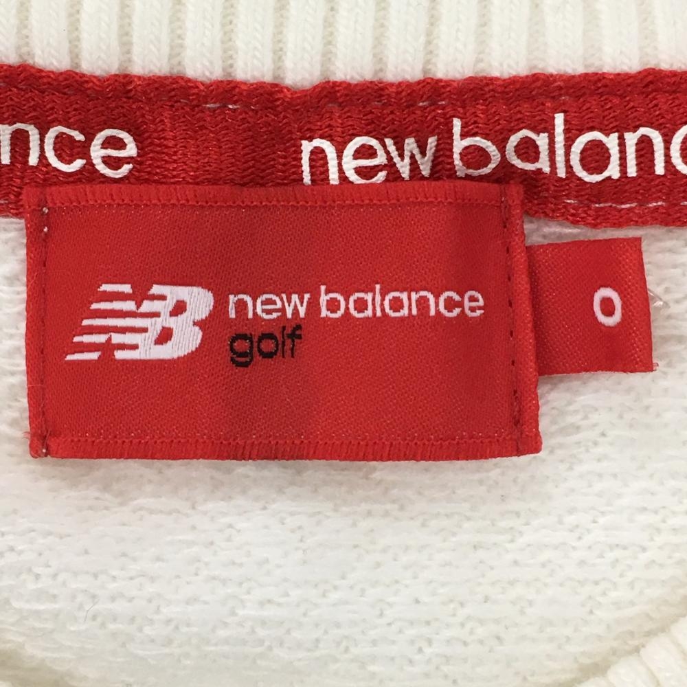 【美品】ニューバランスゴルフ セーター 白×ネイビー 袖ライン ロゴ刺しゅう ウール混 ニット レディース 0(S) ゴルフウェア New Balance