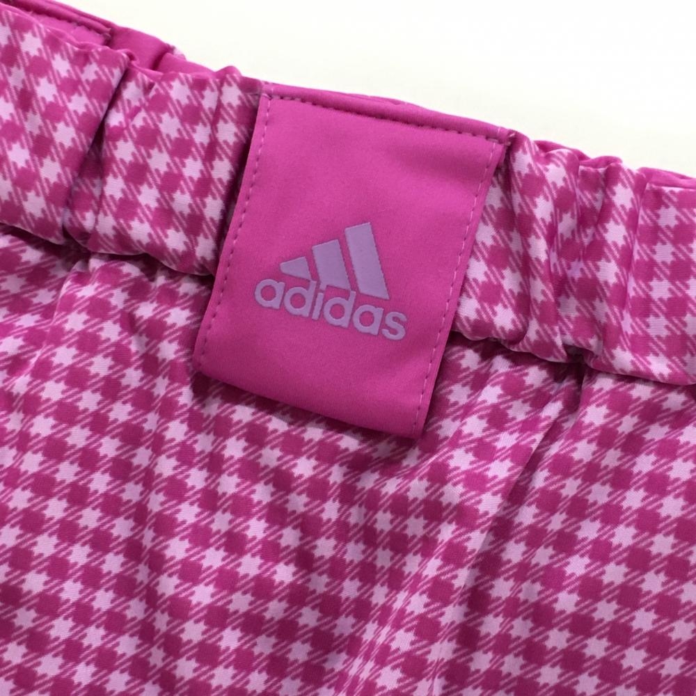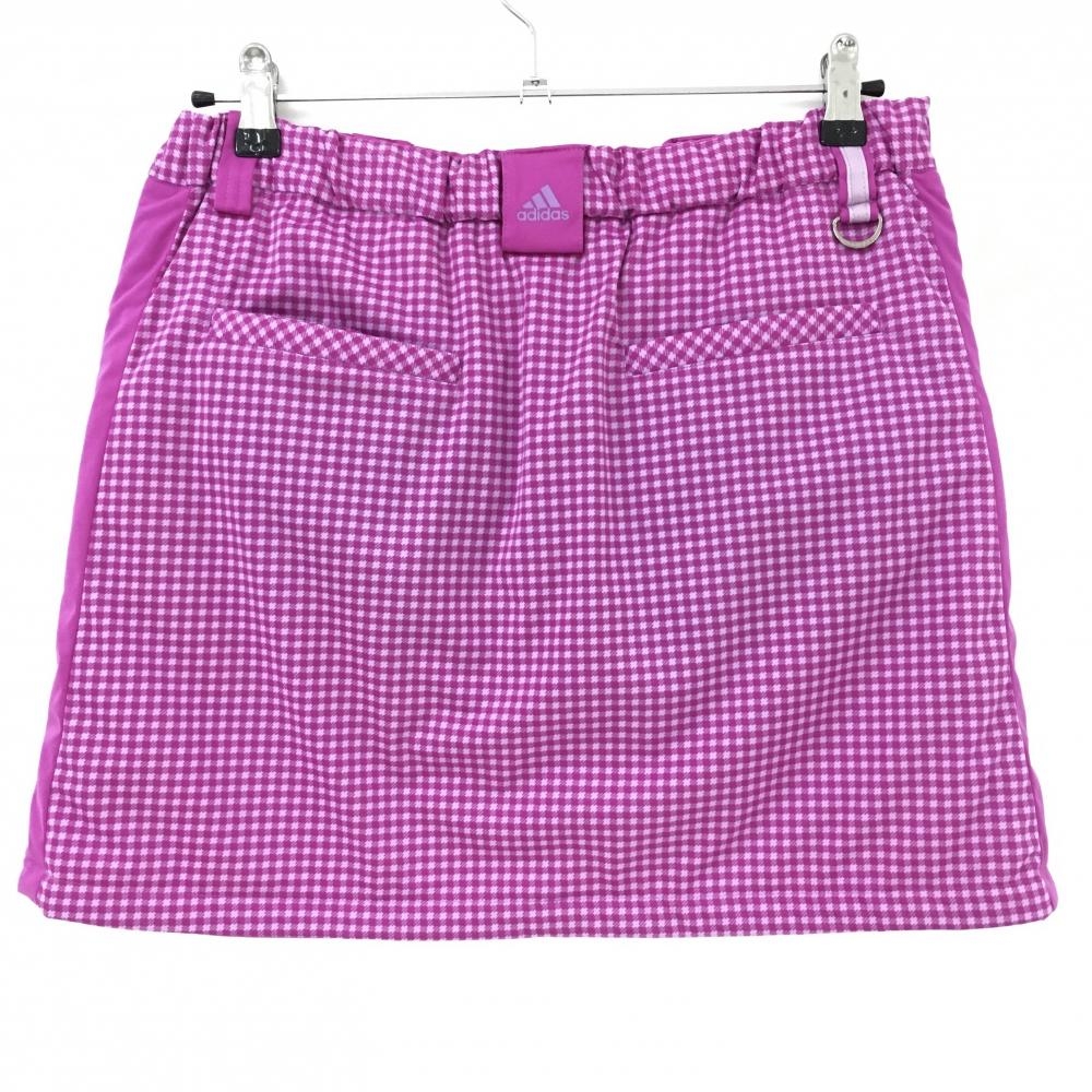 【超美品】アディダス 中綿リバーシブルスカート パープル×白 チェック 裏無地 レディース L/G ゴルフウェア adidas