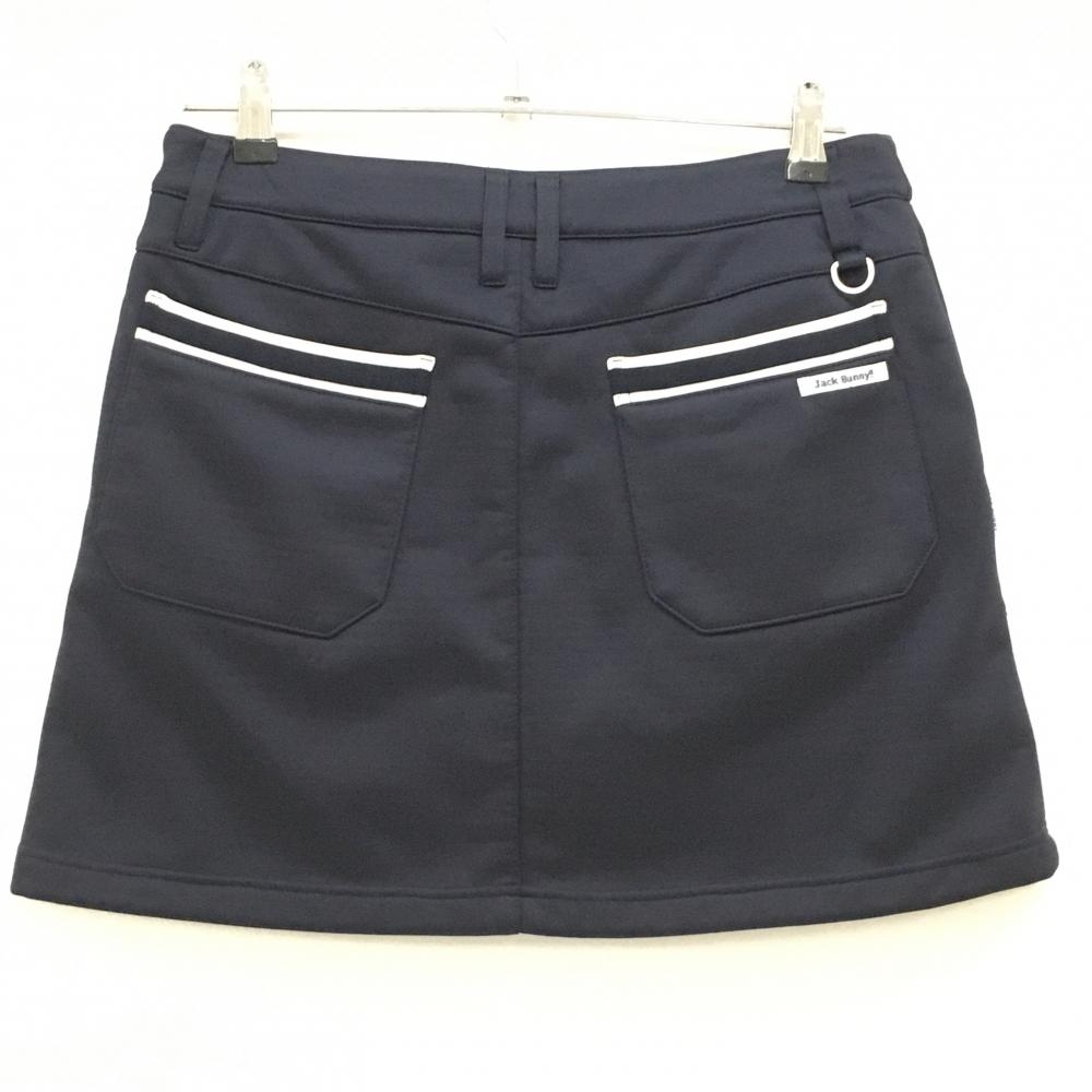 ジャックバニー スカート ネイビー×白 裏起毛 内側インナーパンツ サイドファスナー レディース 2(L) ゴルフウェア Jack Bunny
