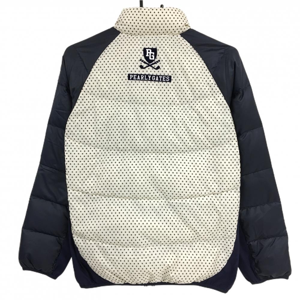 【美品】パーリーゲイツ ダウンジャケット 白×黒 身頃ドット 袖ネイビー 一部ストレッチ 軽量 レディース 0(S) ゴルフウェア PEARLY GATES