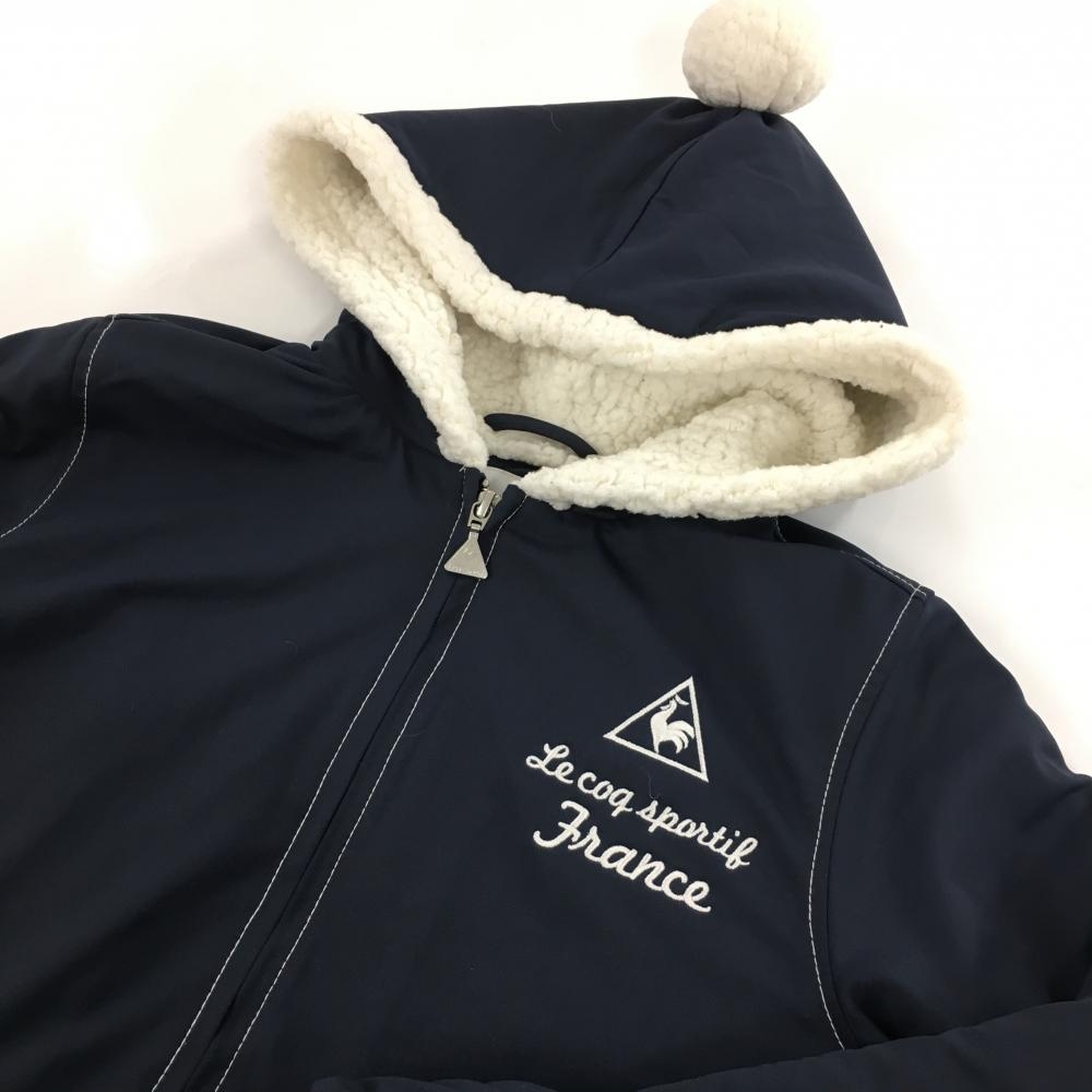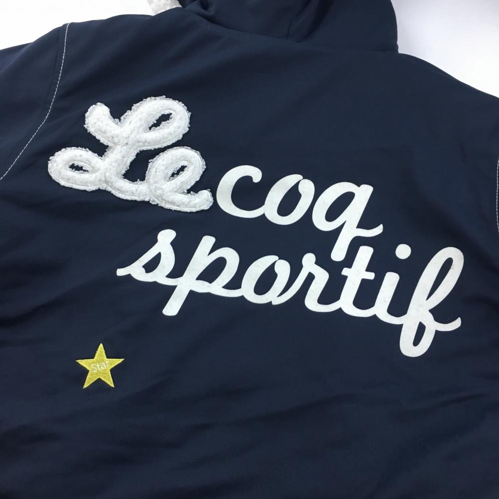 ルコック フード付きブルゾン ネイビー×白 ステッチ バックビッグロゴ 裏ボア レディース S ゴルフウェア le coq sportif