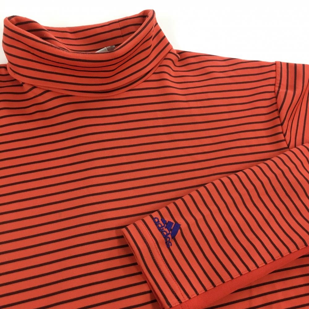 アディダス 長袖タートルネックシャツ レッド×黒 ボーダー柄 ロゴ刺しゅう メンズ L ゴルフウェア adidas