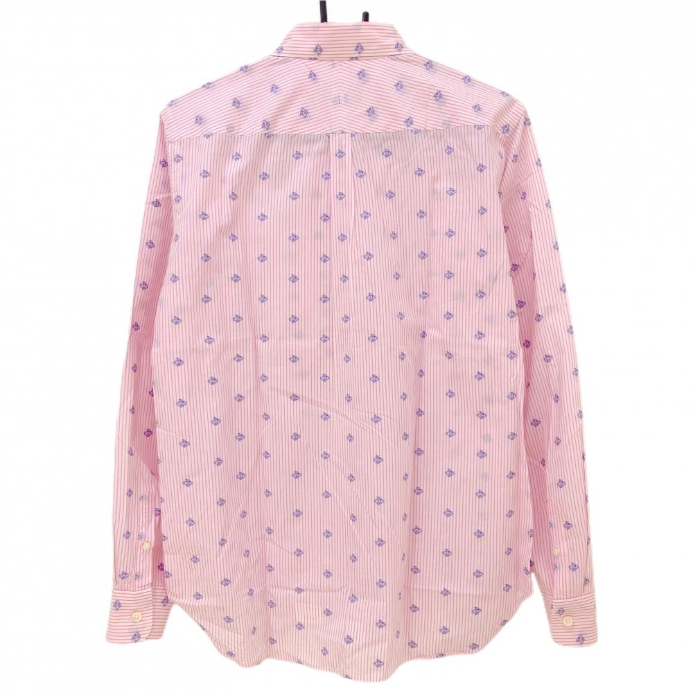 パーリーゲイツ 長袖シャツ 白×ピンク×ブルー ストライプ 総柄 コットン100% メンズ 4(M) ゴルフウェア PEARLY GATES