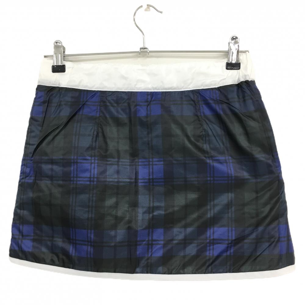 【超美品】カッパ 中綿ラップスカート 白×ネイビー キルティング 裏チェック レディース 7 ゴルフウェア Kappa