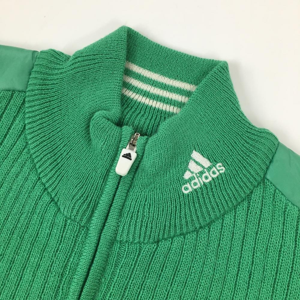 【新品】アディダス 中綿ニットベスト グリーン ハーフジップ 背面中綿 ウール混 レディース XS/XP ゴルフウェア adidas