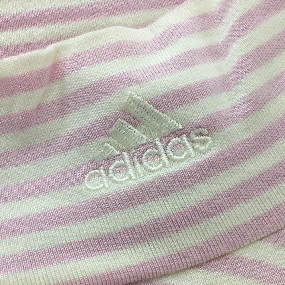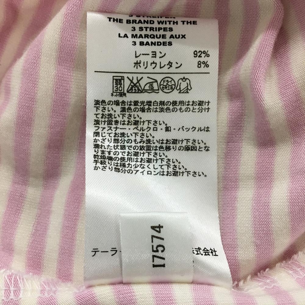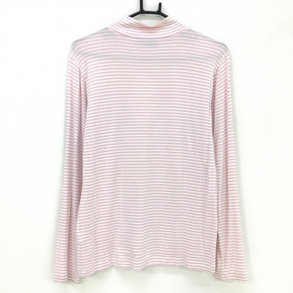 アディダス 長袖ハイネックシャツ ピンク×白 ボーダー ネックロゴ レディース L/G ゴルフウェア adidas