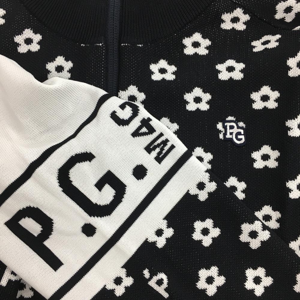 【超美品】パーリーゲイツ ニットジャケット ネイビー×白 花柄 レディース 1(M) ゴルフウェア 2023年モデル PEARLY GATES