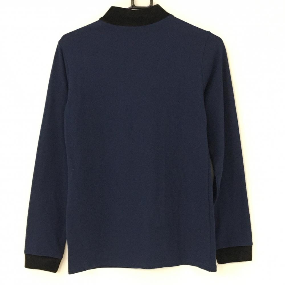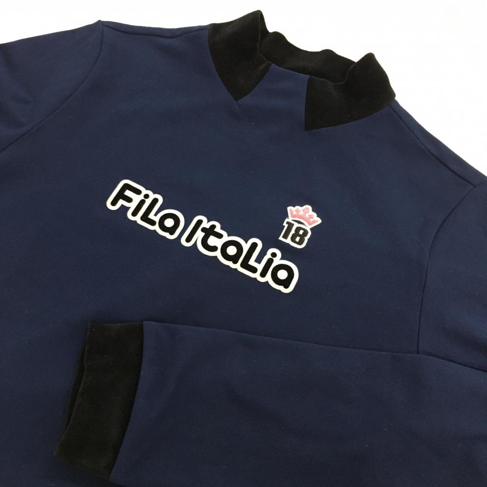 【超美品】フィラゴルフ 長袖ハイネックシャツ ネイビー×黒 ネック・袖口ベロア レディース L ゴルフウェア FILA GOLF