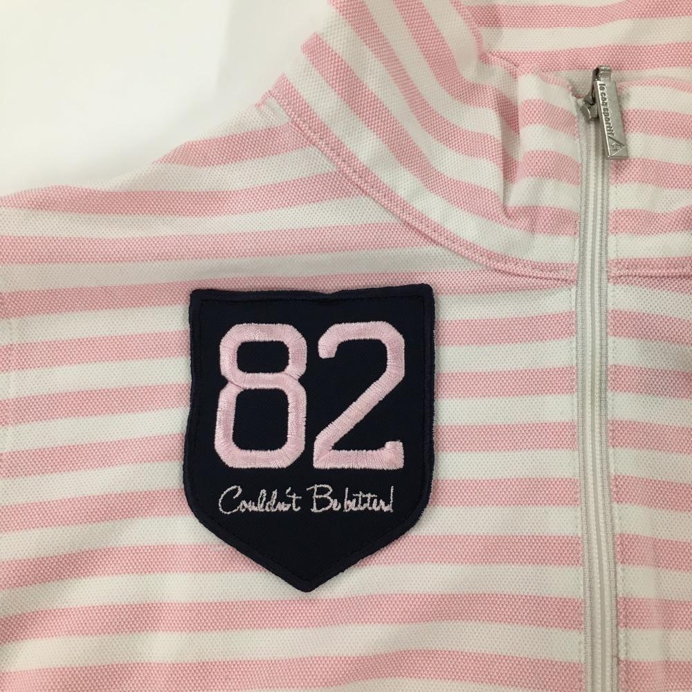 【美品】ルコック 長袖ハイネックシャツ 白×ピンク ボーダー ハーフジップ レディース L ゴルフウェア le coq sportif