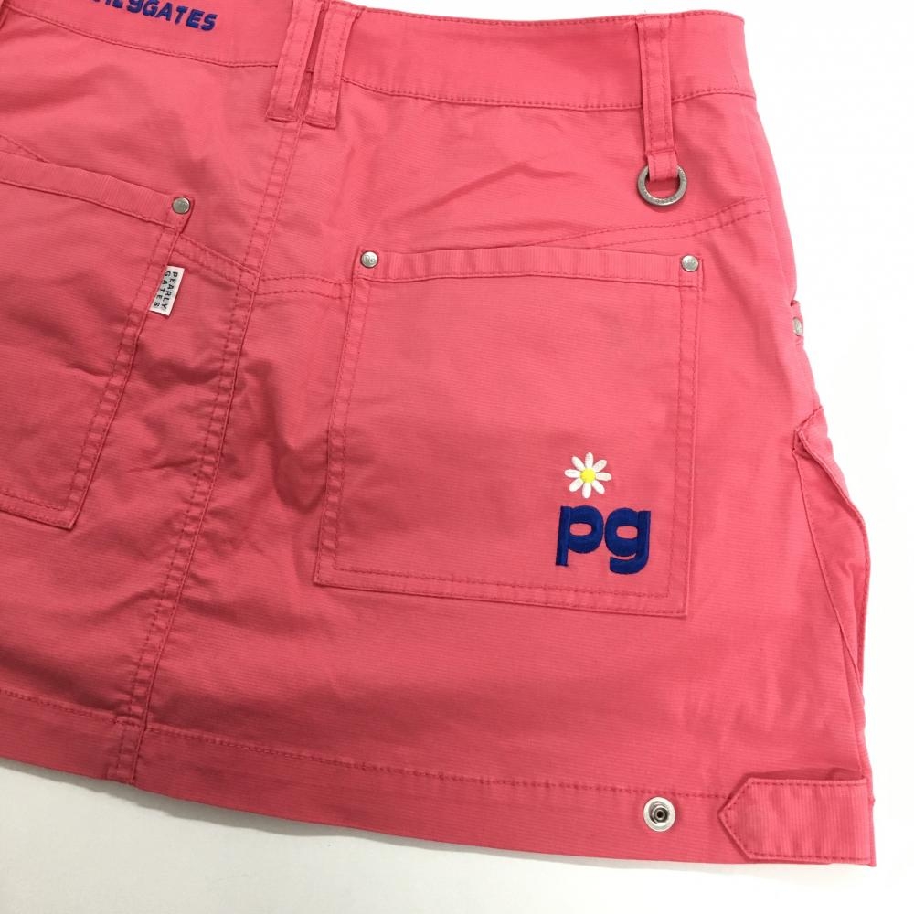 【美品】パーリーゲイツ スカート ピンク 花刺しゅう ティー装着可 複数ポケット レディース 1(M) ゴルフウェア PEARLY GATES