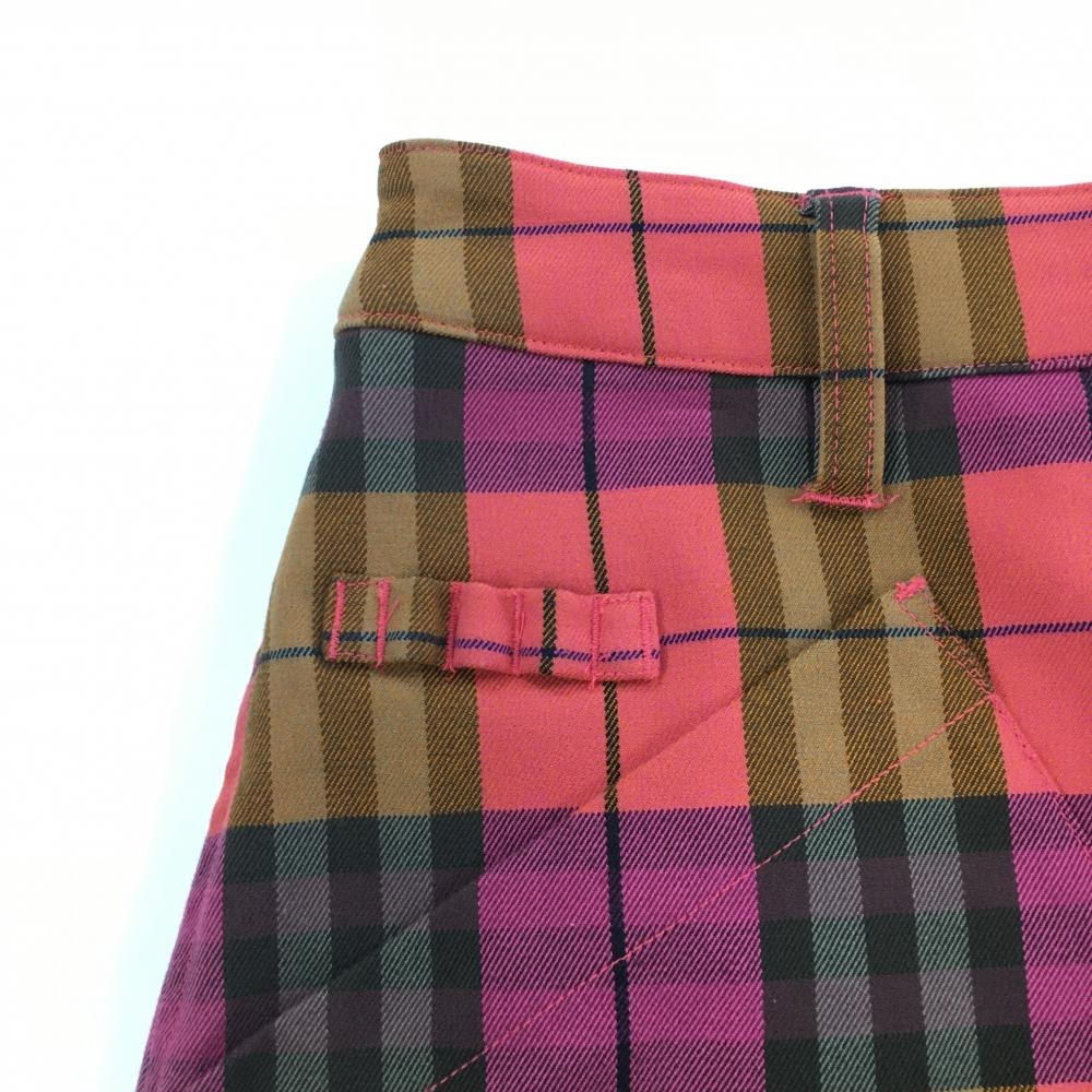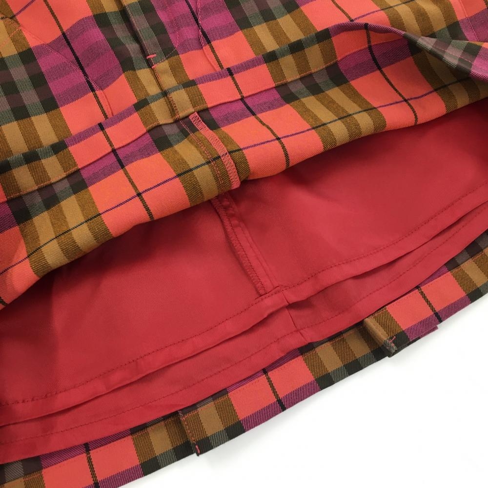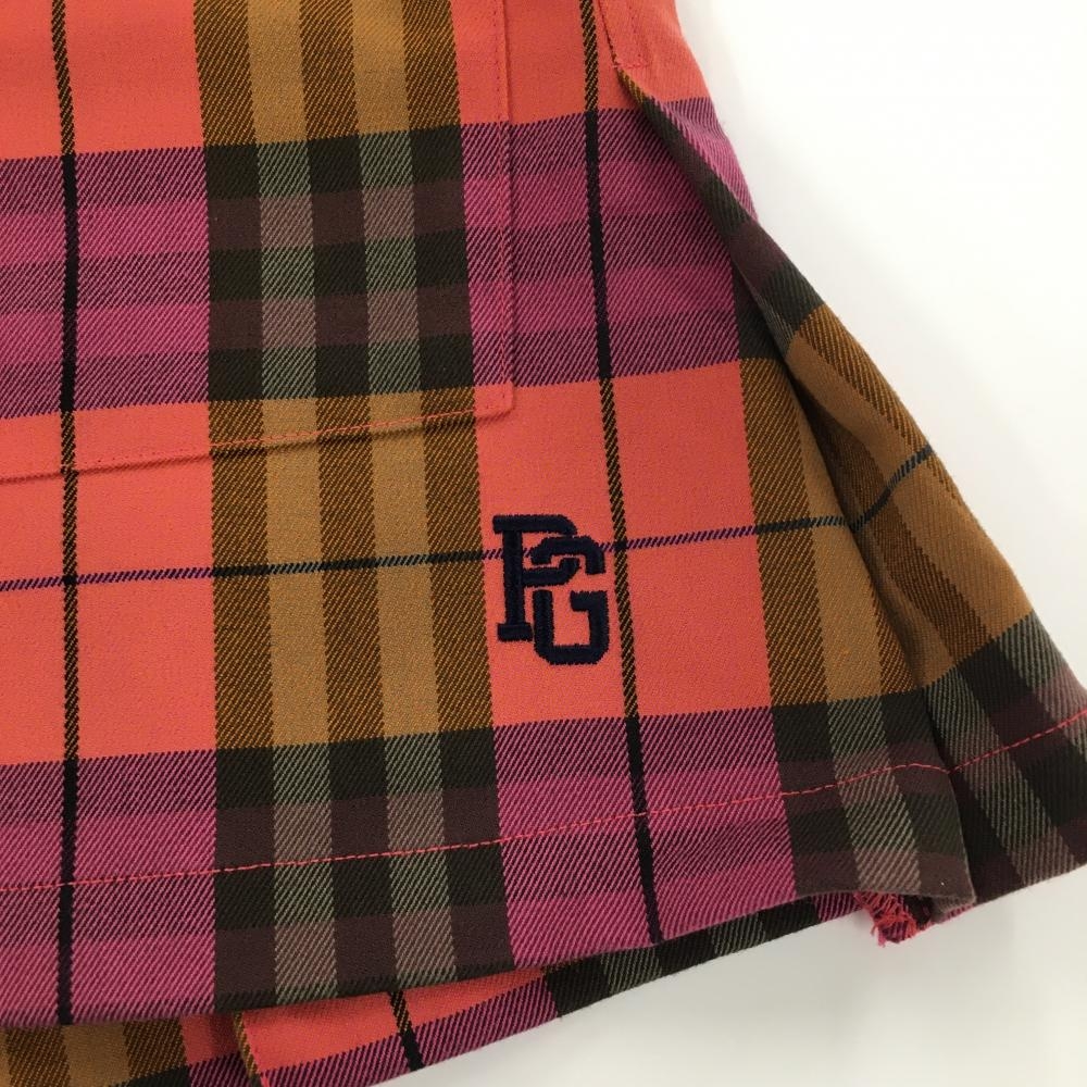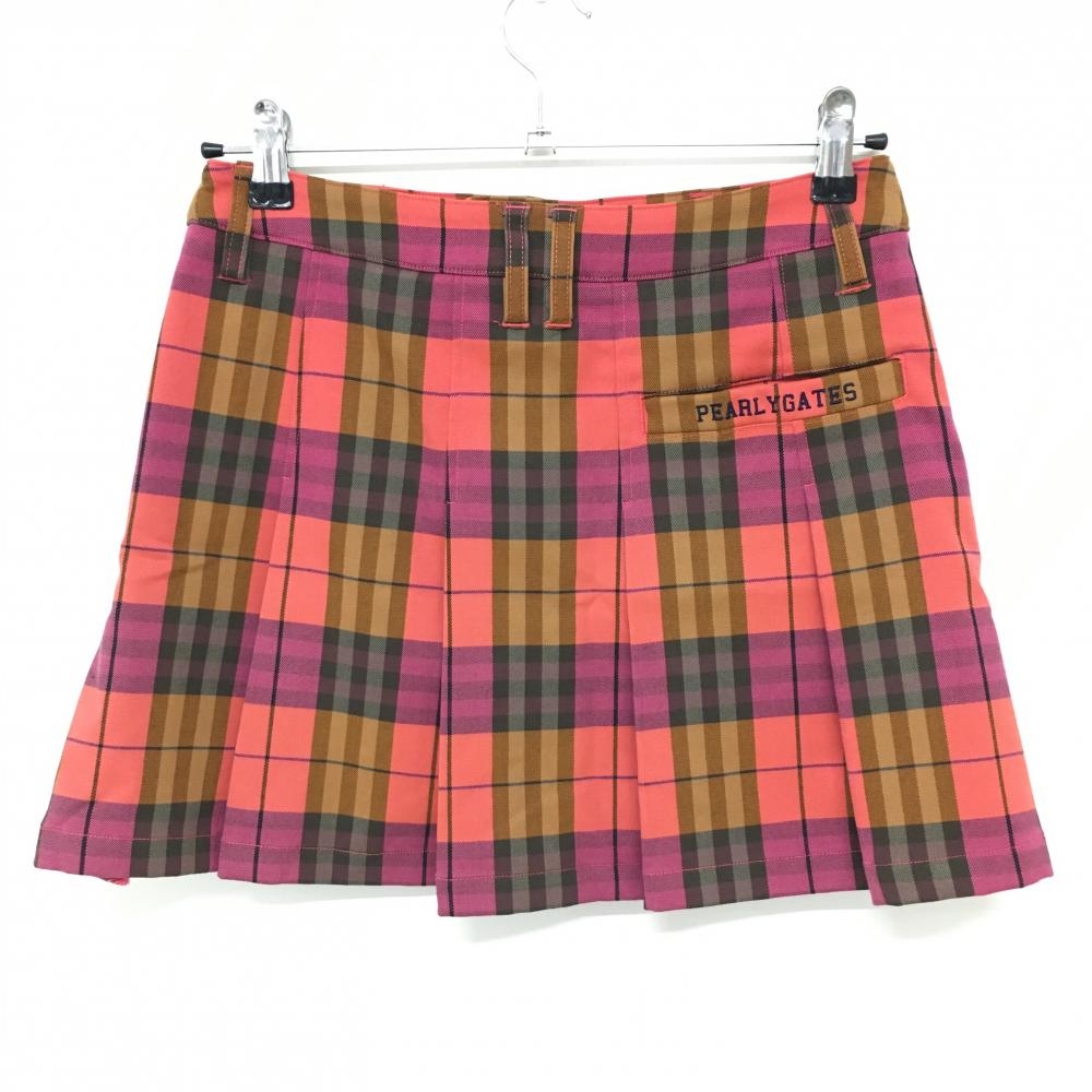 【超美品】パーリーゲイツ スカート ピンク×ブラウン チェック 裏地付 ティー装着可 レディース 0(S) ゴルフウェア PEARLY GATES