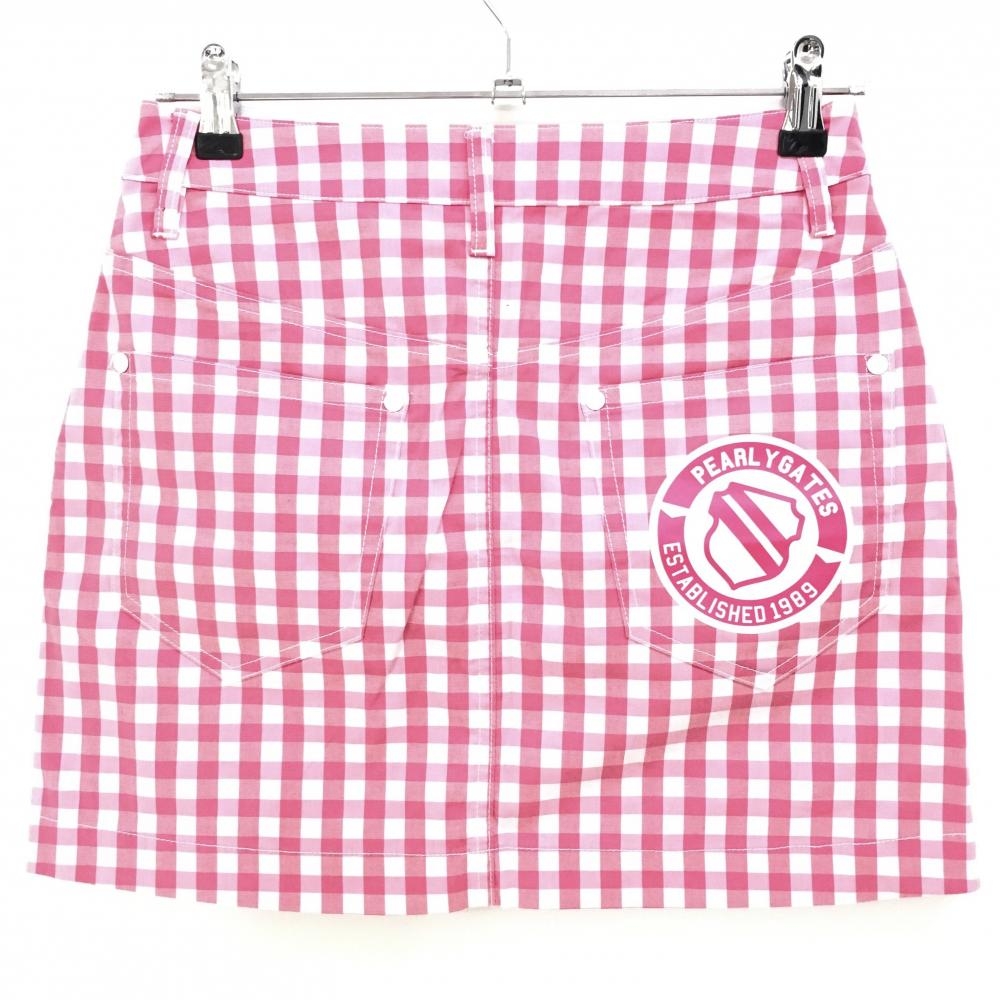 【美品】パーリーゲイツ スカート ピンク×白 ギンガムチェック レディース 0(S) ゴルフウェア PEARLY GATES